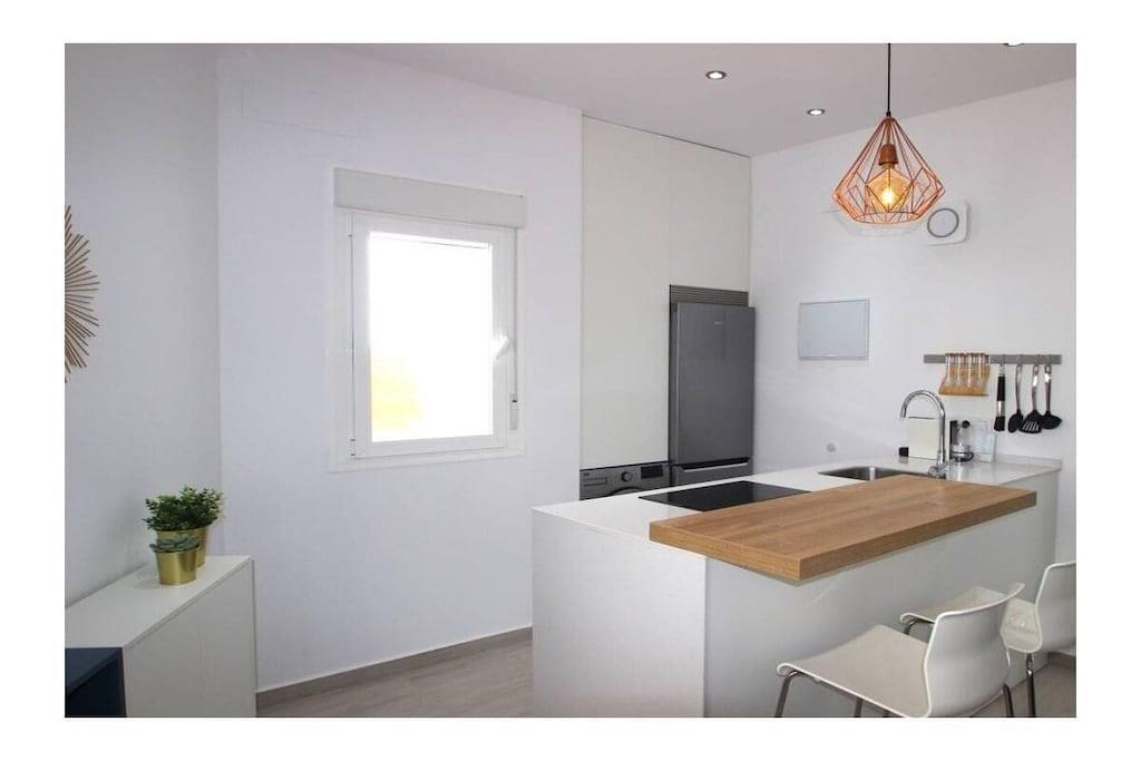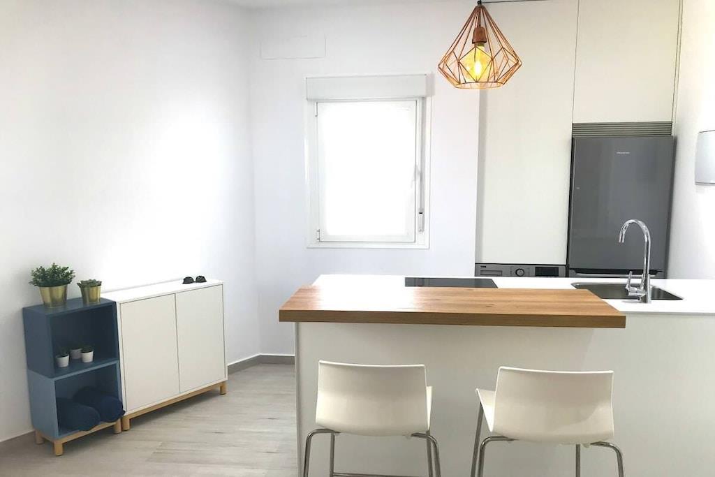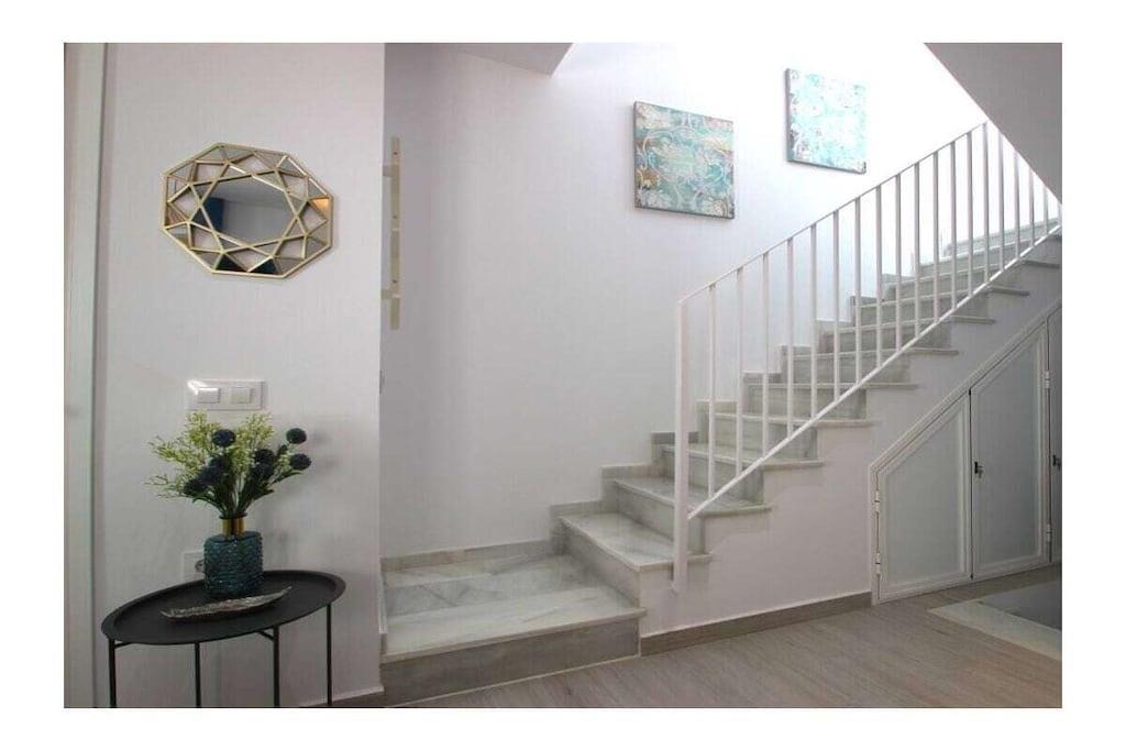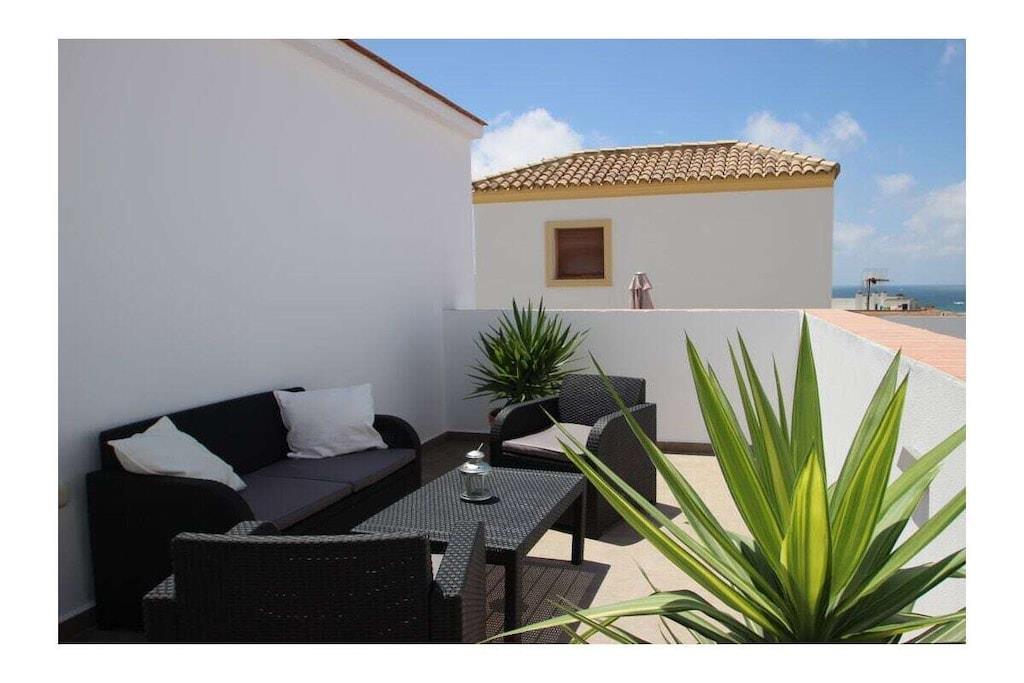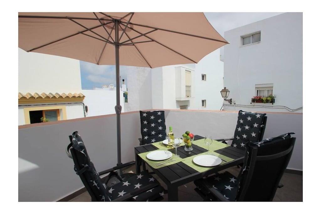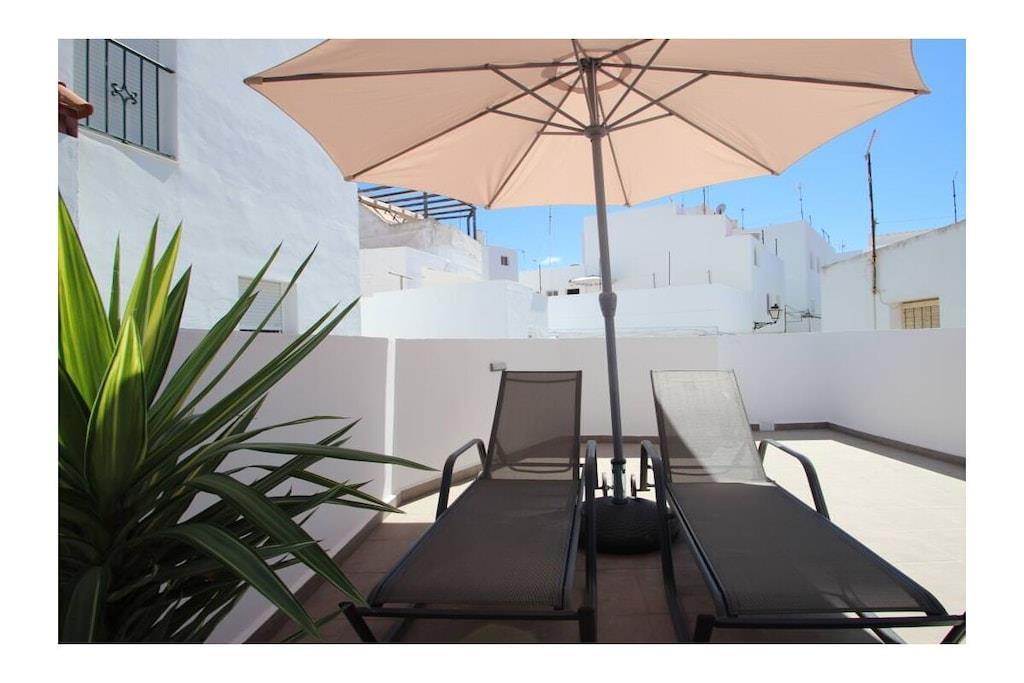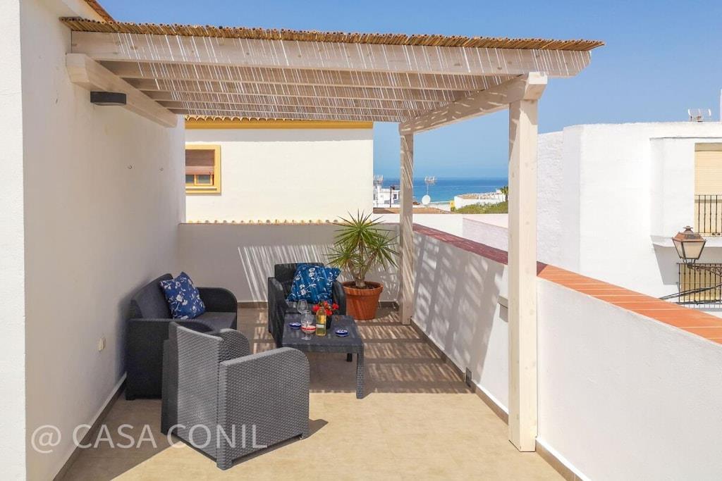 Hervorragend ausgestattet und geschmackvoll eingerichtet präsentiert sich dieses neu erbaute, private Stadthaus im beliebten Fischerviertel Conils - es bietet für 2-3 Personen (2 Erwachsenen und einem Kind) einen komfortablen Urlaub in andalusischer Atmosphäre nur wenige Schritte vom Strand und wenige Gehminuten von der Altstadt Conils entfernt. Beide privaten Terrassen sind möbliert - die größere Terrasse bietet Meerblick, Chill-Out Möbel und Liegen um das Leben draußen zu genießen. Details: - Schlafzimmer mit Doppelbett 1,80 x 2,0m - kann zu zwei Einzelbetten von je 0,90cm umgestellt werden, mit großem Kleiderschrank, Klimaanlage, WLan Internet - Bad mit moderner Dusche - Salon mit Sofa (umbaubar zu einem Bett für ein evtl. mitreisendes Kind), SmartTV mit deutschen und internationalen Sat-Programmen, schnelles WiFi Internet via Glasfaser - moderne, offene Küche mit Spülmaschine, Waschmaschine, Backofen, Induktionskochfeld, großer Kühl-Gefrierkombination und allen weiteren notwendigen Küchengeräten und -utensilien Der Zugang zu den Terrassen erfolgt durch eine private Treppe innerhalb des Hauses. Die untere Terrasse ist möbliert mit einem Esstisch und bequemen Stühlen, wenige Stufen höher wird die obere, größere Terrasse mit Meerblick erreicht. Hier gibt es ein Sofa und Sessel, einen zusätzlichen Tisch und 2 moderne Liegen. Das Haus ist ideal geeignet für Paare mit Kleinkind, da die komplette Babyausstattung (Babybett, Hochstuhl) vorhanden ist. Registernummer: VFT/CA/04250