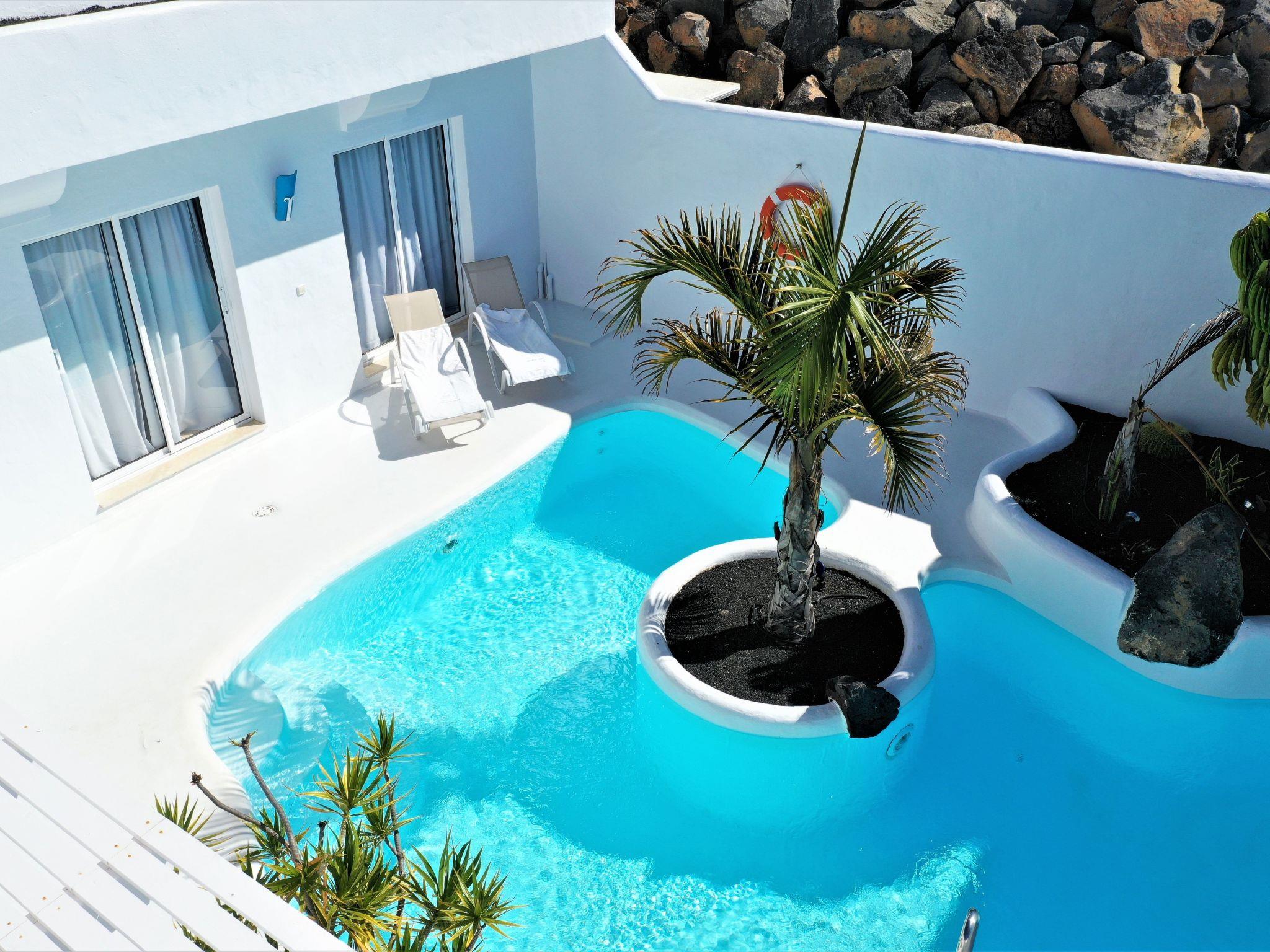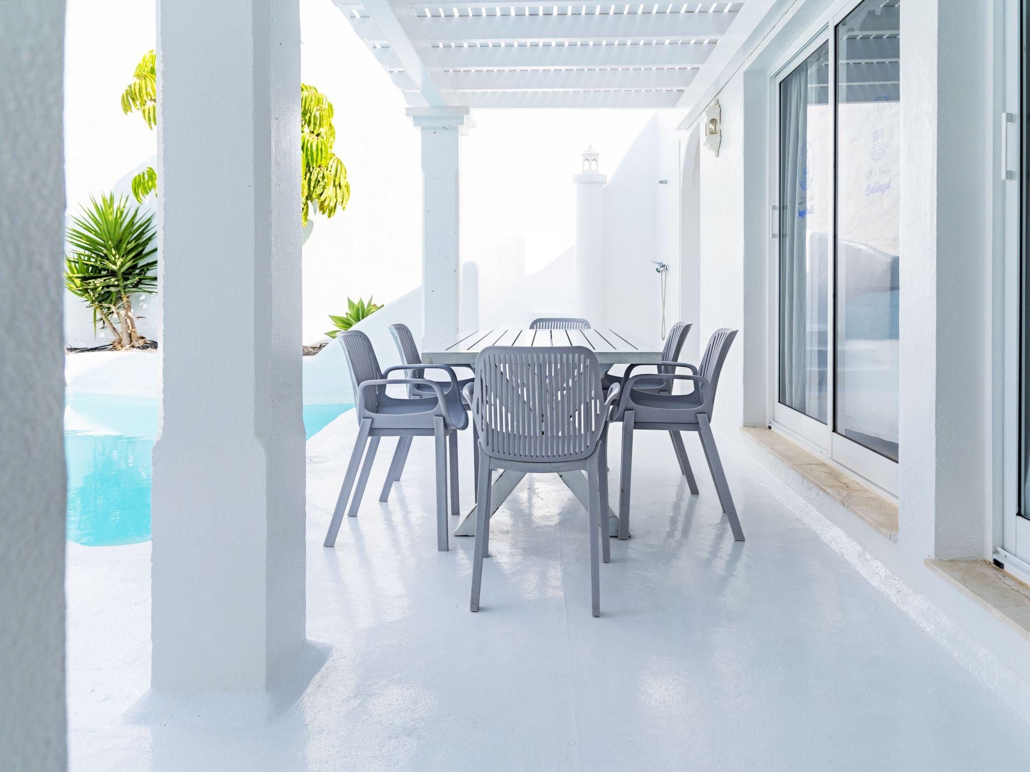 Im Außenbereich setzt sich die Exklusivität mit einer privaten Terrasse fort, auf der Sie die warme Sonne Fuerteventuras genießen können. Der Swimmingpool, der exklusiv genutzt werden kann, verleiht Ihrem Aufenthalt eine besondere Note und bietet einen privaten Raum zum Abkühlen und Entspannen. Der Whirlpool und die private Dachterrasse sind der ideale Ort, um sich nach einem Tag auf der Insel zu entspannen.