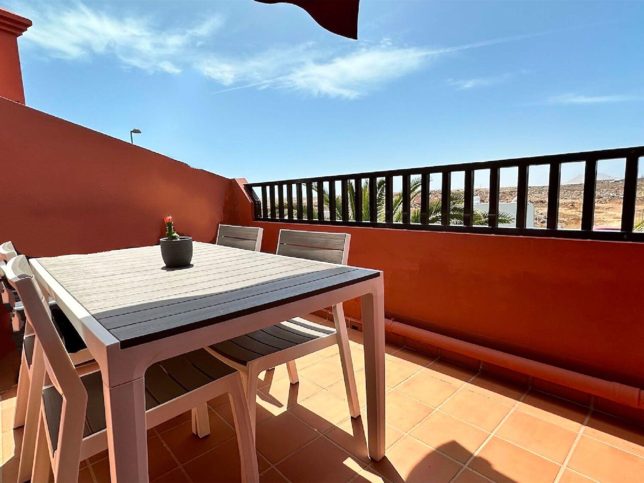 Auch im Außenbereich der Wohnung mangelt es nicht an Attraktionen. Genießen Sie eine schöne Terrasse und einen Balkon, auf denen Sie sich im Freien entspannen können. Der Garten, obwohl gemeinschaftlich genutzt, bietet eine beruhigende grüne Oase, ideal um ein Buch zu lesen oder einfach das privilegierte Klima von Fuerteventura zu genießen. Beachten Sie jedoch, dass das Grillen im Garten verboten ist und somit eine ruhige Umgebung für alle Bewohner gewährleistet ist.