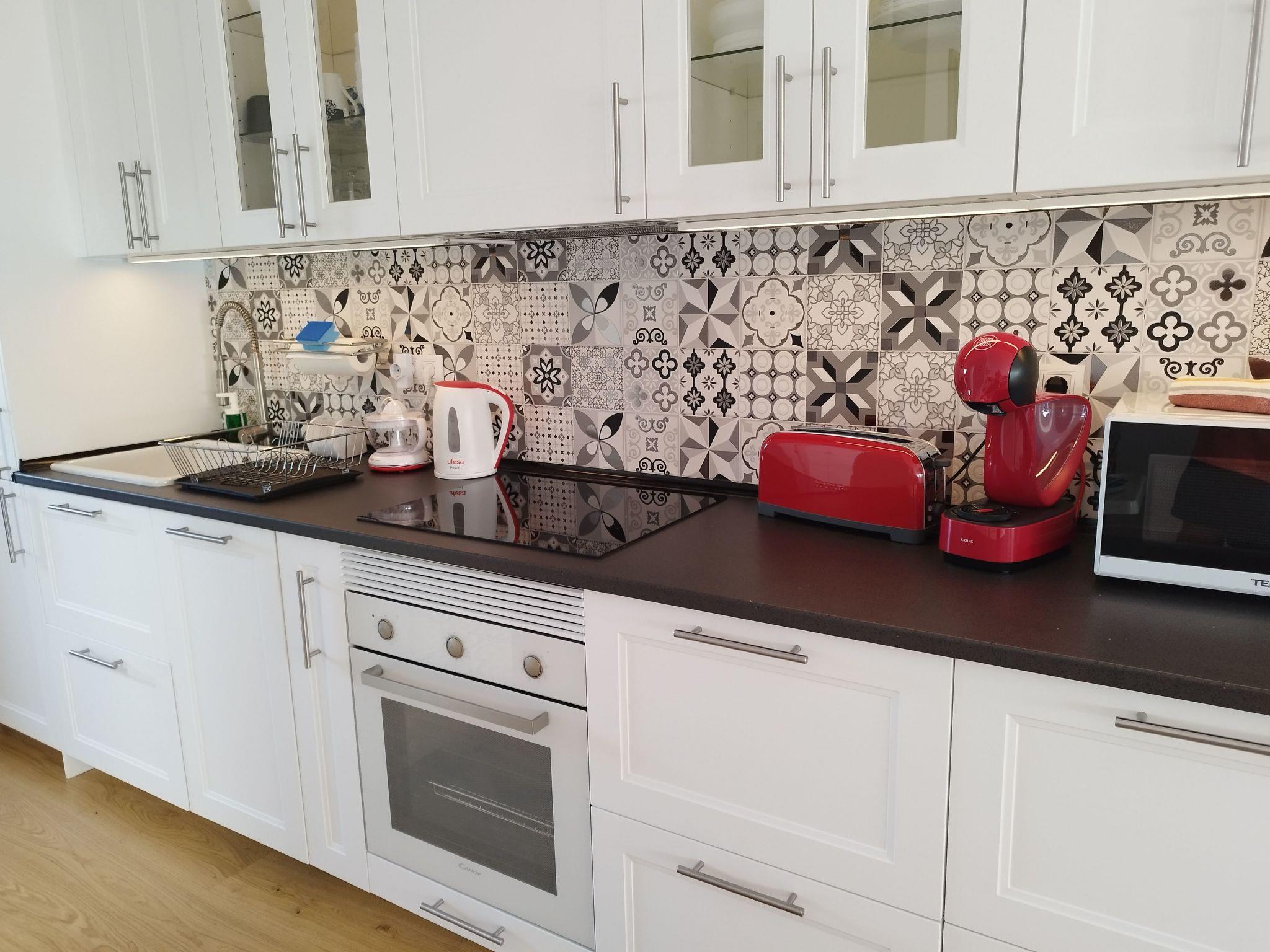 Die Wohnung ist so ausgestattet, dass sie alle Ihre Bedürfnisse erfüllt. Mit zwei Schlafzimmern und einem Badezimmer mit Dusche ist für Komfort gesorgt. Die Teilklimaanlage hält die Wohnung auf einer angenehmen Temperatur, während drei zusätzliche Ventilatoren für eine gute Luftzirkulation sorgen. Zu den Annehmlichkeiten gehören eine Waschmaschine zur privaten Nutzung, eine Kaffeemaschine mit Pads, ein Geschirrspüler und ein Wasserkocher, sodass Sie Ihre Lieblingsgerichte und -getränke mit Leichtigkeit zubereiten und genießen können.