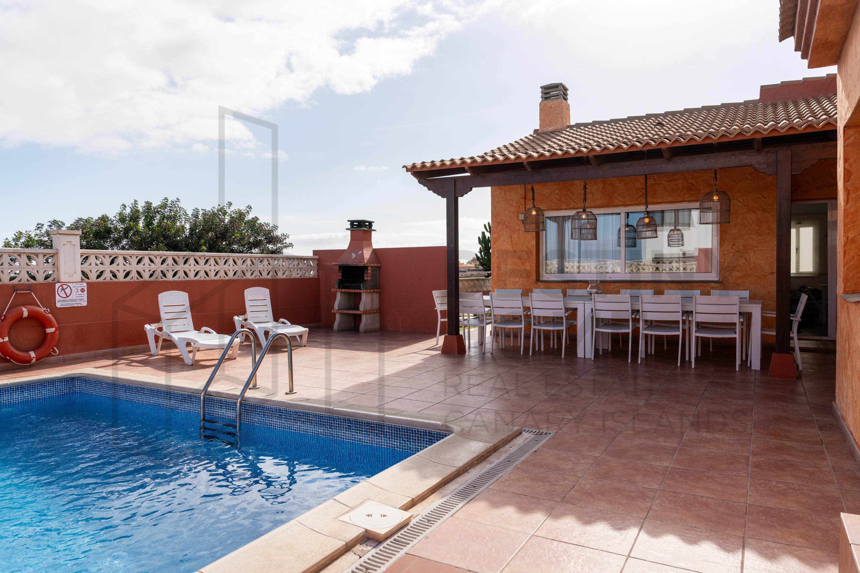 " Willkommen in der Villa Atlantic Ocean auf Fuerteventura. Unsere Ferienvilla im Herzen der Touristengemeinde Corralejo bietet Ihnen einen Panoramablick auf die Vulkane und den Atlantischen Ozean sowie einen Außenbereich mit privatem Pool.