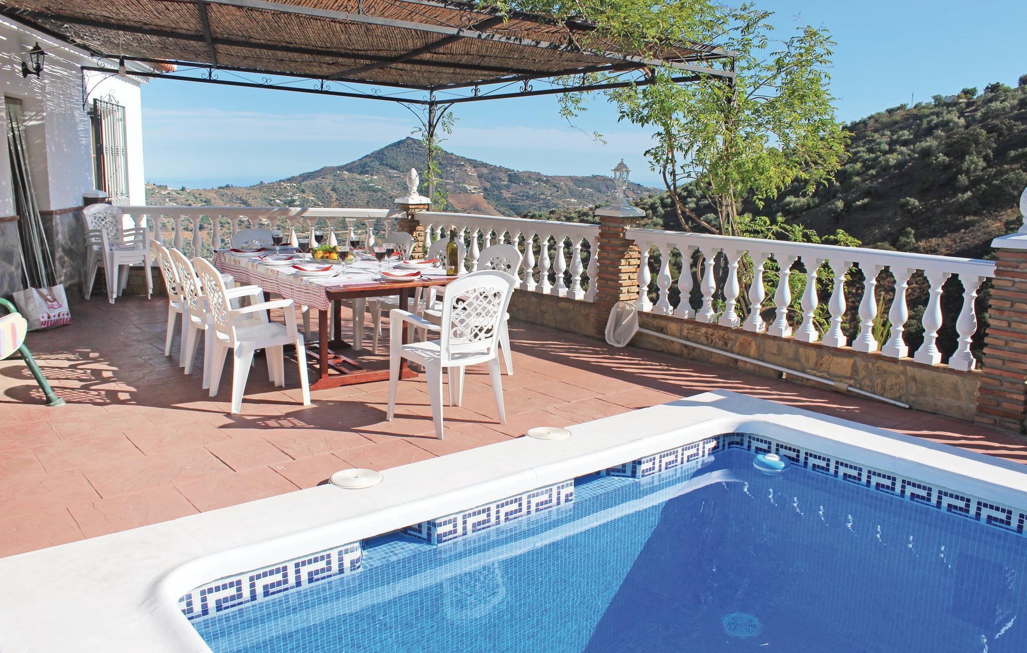 Die überdachte Terrasse die sich direkt neben dem herrlichen Pool befindet wird Sie begeistern. Hier können Sie Ihre gemeinsamen Mahlzeiten mit der ganzen Familie im Freien genießen; in einer interessanten Urlaubslektüre schmökern und die atemberaubende Sicht auf die umliegende Landschaft und das blaue Meer im Hintergrund bewundern. Die gut ausgestattete Küche ist offen zum geräumigen Wohnzimmer mit Kaminofen. Das Haus befindet sich in Corumbela, einem Dorf mit ca. 350 Einwohnern, das von jedem Punkt einen phantastischen Ausblick auf Canillas de Albaida, Cómpeta und Sayalonga bis hinunter zum nahen Mittelmeer gewährt.