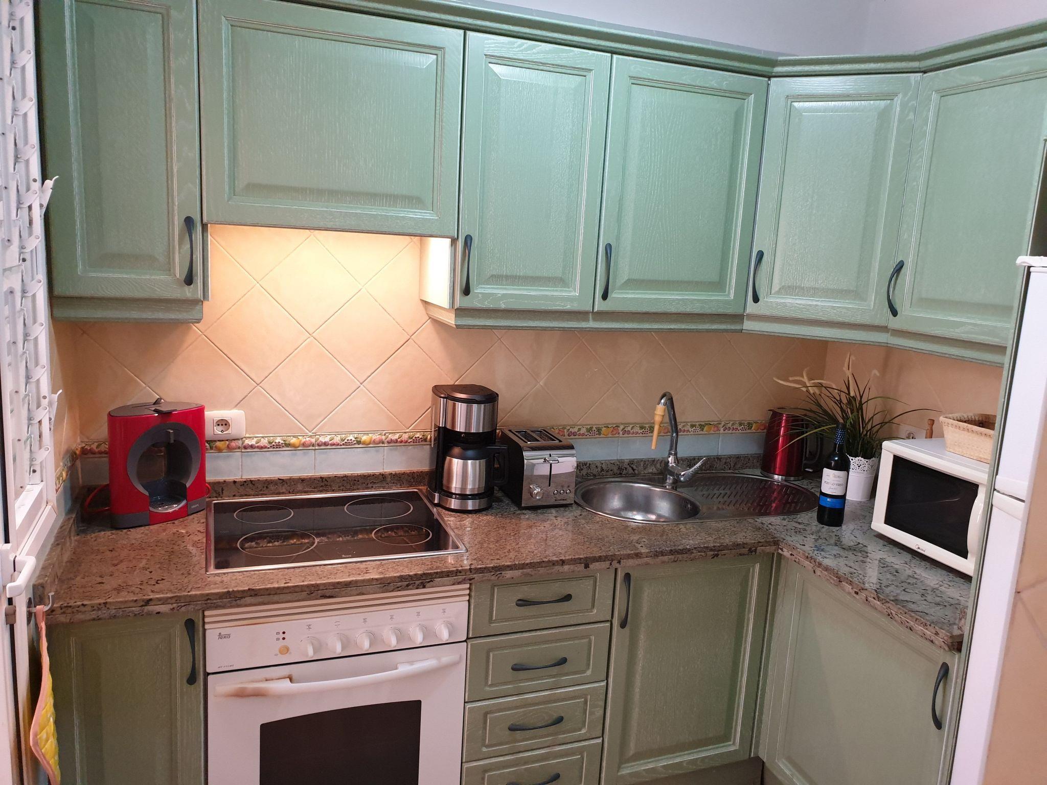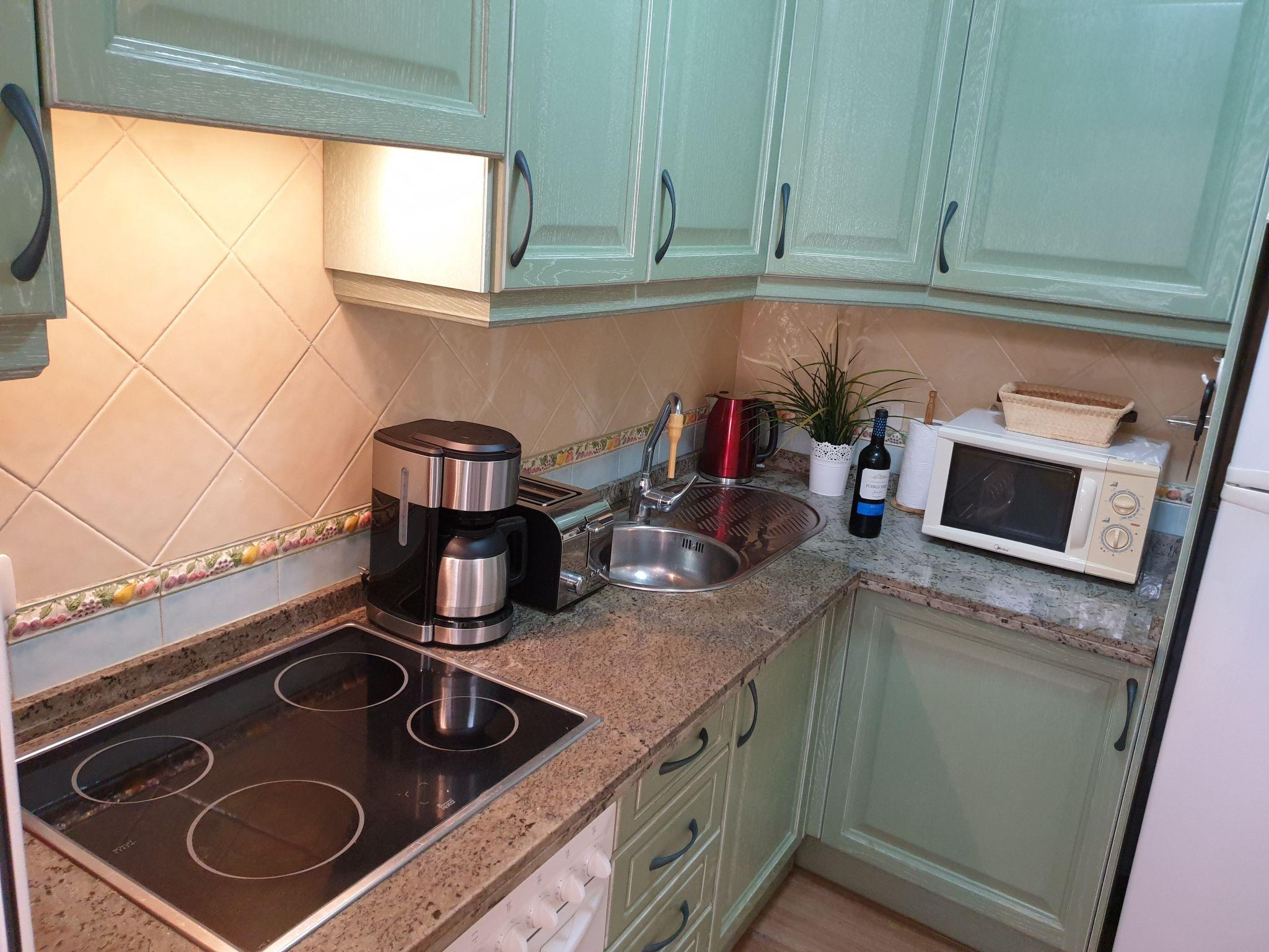 Das Apartment Benimar liegt im Erdgeschoss im begehrten Stadtviertel "El Duque" nicht weit vom Strand entfernt. Zum Meer sind es ungefähr 750 Meter. Die Wohnung verfügt über eine komplett ausgestattete Küche mit Geschirrspüler, Backofen, Cerankochfeld, Kühl- und Gefrierkombination, Mikrowelle, Wasserkocher, Toaster und Kaffeemaschine. Das Wohnzimmer hat ein Schlafsofa, das sich ausziehen läßt und eine komfortable Schlafgelegenheit für 2 weitere Personen bietet. Im Wohnzimmer gibt es einen Flachbildfernseher mit internationalen Fernsehprogrammen, Internet über Wifi, DVD-Player und eine Stereoanlage.