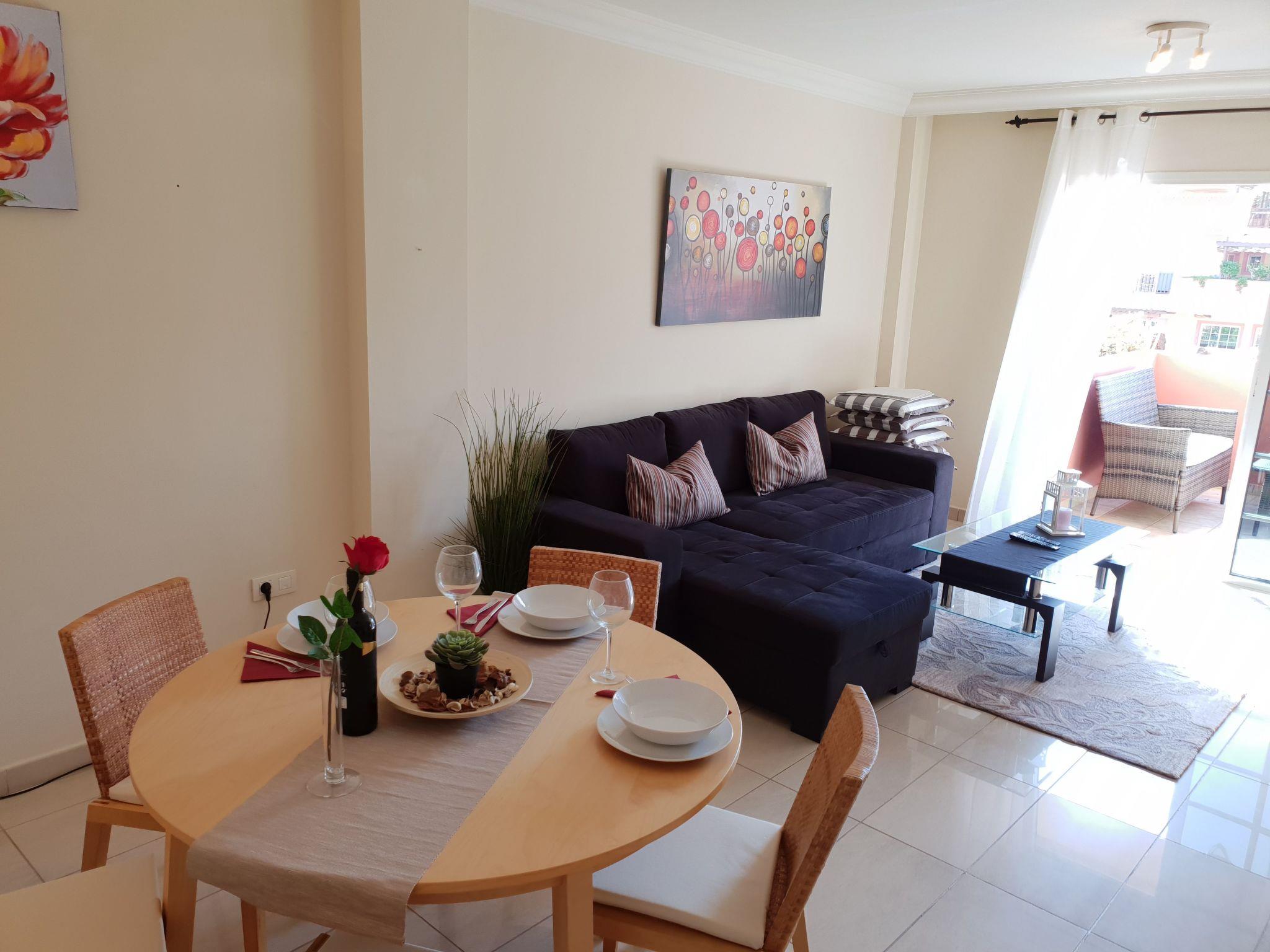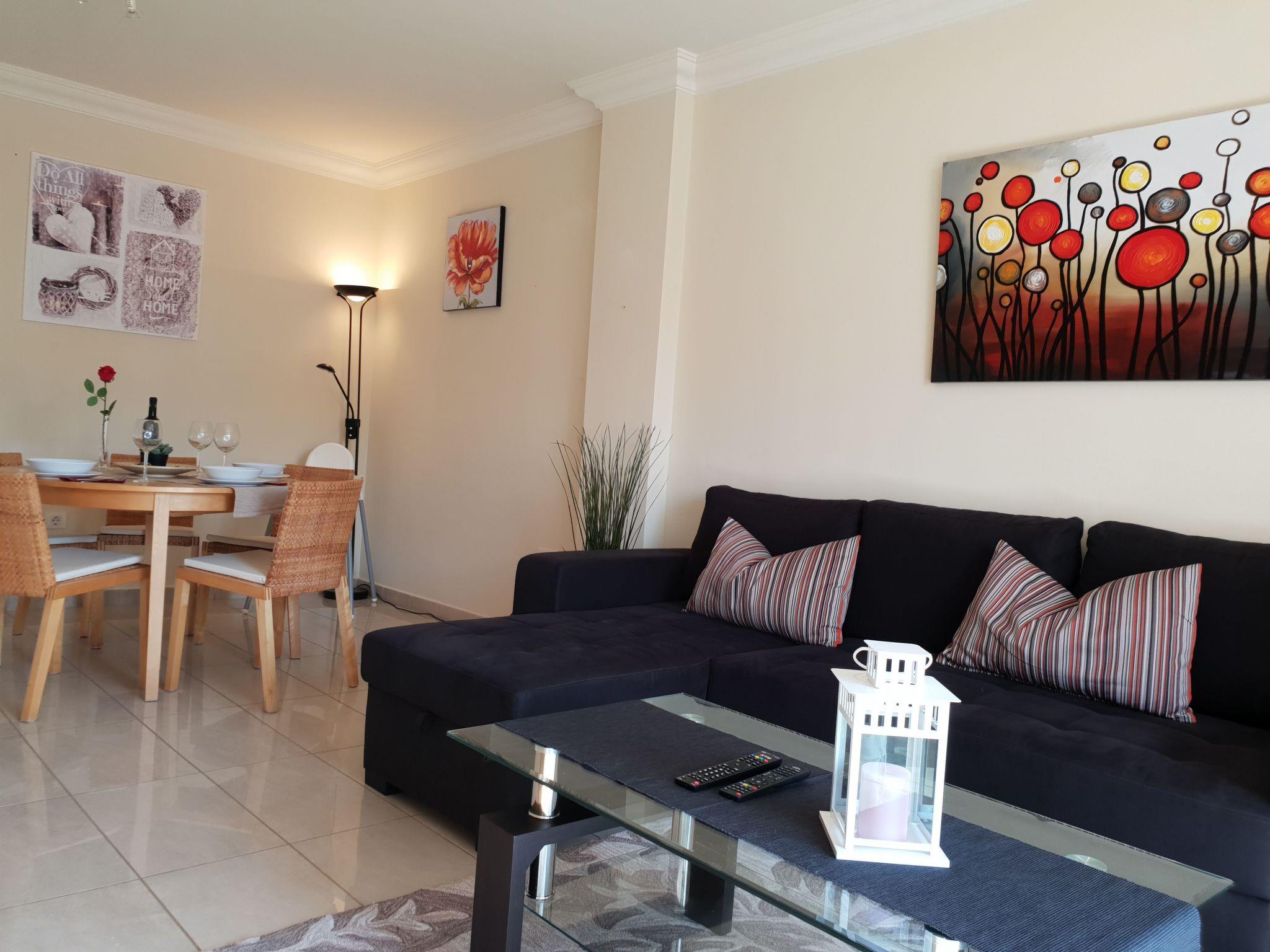 Dieses sehr exklusive Apartment in bester Lage in Costa Adeje überrascht mit einer großen Terrasse, von der man einen traumhaften Meerblick hat. Dort können Sie die vielen Sonnentage in vollen Zügen genießen. Das Objekt gehört zur absoluten Spitzenklasse auf Teneriffa im beliebten und exklusiven Stadtteil El Duque. Sie erwartet ein unglaublicher Ausblick über den Atlantik der sich bis hin nach La Gomera zieht – hier können Sie jeden Tag wundervolle Sonnenuntergänge beobachten und abends bei einem Glas Wein genießen. Dieses Apartment mit ausreichend Platz bietet zwei Schlafzimmer, zwei Badezimmer, ein großes Wohnzimmer und eine voll ausgestattete Küche. Der Pool ist im Winter beheizt und verfügt über Sonnenliegen. Die moderne Küche verfügt über eine Spülmaschine, Herd mit Cerankochfeld, Backofen, Mikrowelle, Kaffeemaschine, Toaster, Wasserkocher sowie eine Kühl- und Gefrierkombination. Das Wohnzimmer hat ein Schlafsofa, das sich für 2 zusätzliche Personen als Schlafgelegenheit nutzen läßt. Außerdem gibt es einen Flachbildfernseher mit internationalen Satellitenprogrammen im Wohnzimmer, sowie eine Stereoanlage und kostenfreies Internet über Wifi. Viele Geschäfte, Restaurants und der Strand sind in unmittelbarer Nähe, Sie können alles bequem zu Fuß erreichen.