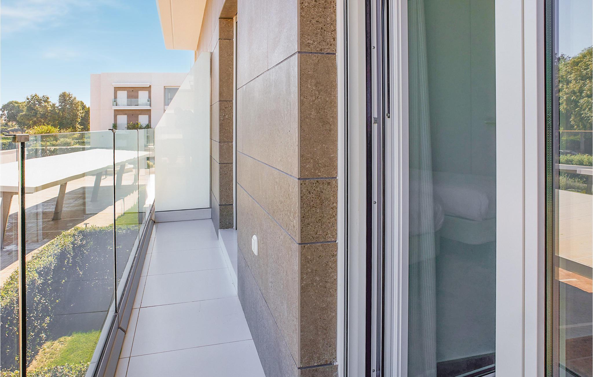 Treten Sie aus dem Wohnbereich auf die Terrasse. Beim Sonnenbaden haben Sie hier einen schönen Blick auf den Pool und können entscheiden, wann der beste Zeitpunkt für eine Erfrischung ist.