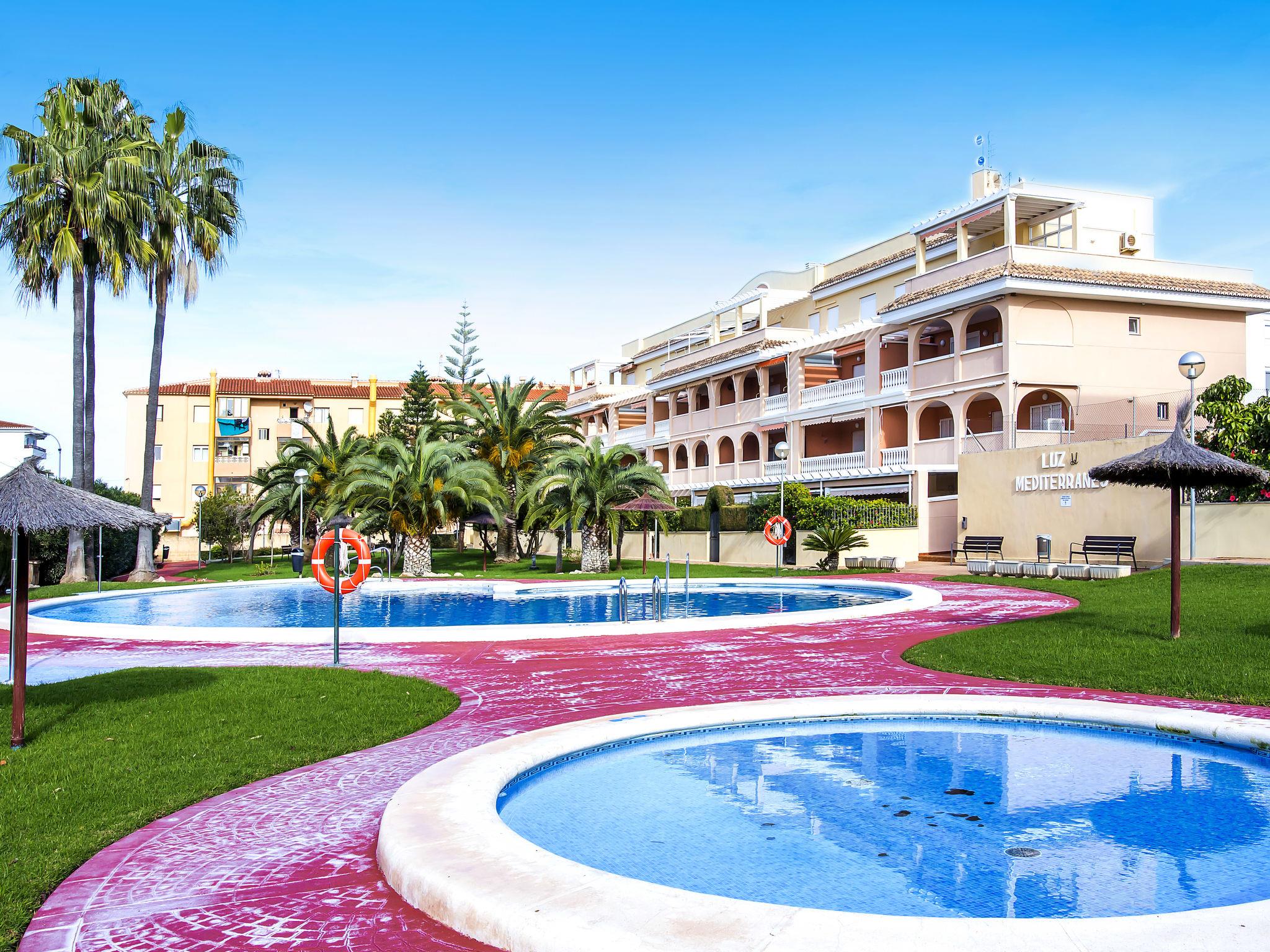 Schönes, gemütliches Appartementhaus "Luz del Mediterraneo", auf 3 Stockwerken, Baujahr 2001. 5 km vom Zentrum von Dénia, im Bezirk Les Marines, 200 m vom Meer, 180 m vom Strand, Richtung Westen. Zur Mitbenutzung: grosser, schöner, gepflegter Garten (eingezäunt) mit Rasen und Pflanzen, Schwimmbad (20 x 11 m, 230 - 80 cm tief, saisonale Verfügbarkeit: 01.Jan. - 31.Dez.). Kinderbecken, Aussendusche, Tennis. Im Hause: Fahrstuhl. Gemeinschaftsgarage. Einkaufsgeschäft 300 m, Supermarkt 500 m, Restaurant 250 m, Café 250 m, Bushaltestelle 50 m, Sandstrand "Els Molins" 250 m. Sporthafen 5 km, Golfplatz (18 Loch) 2 km. Der Besitzer akzeptiert keine Jugendgruppen.