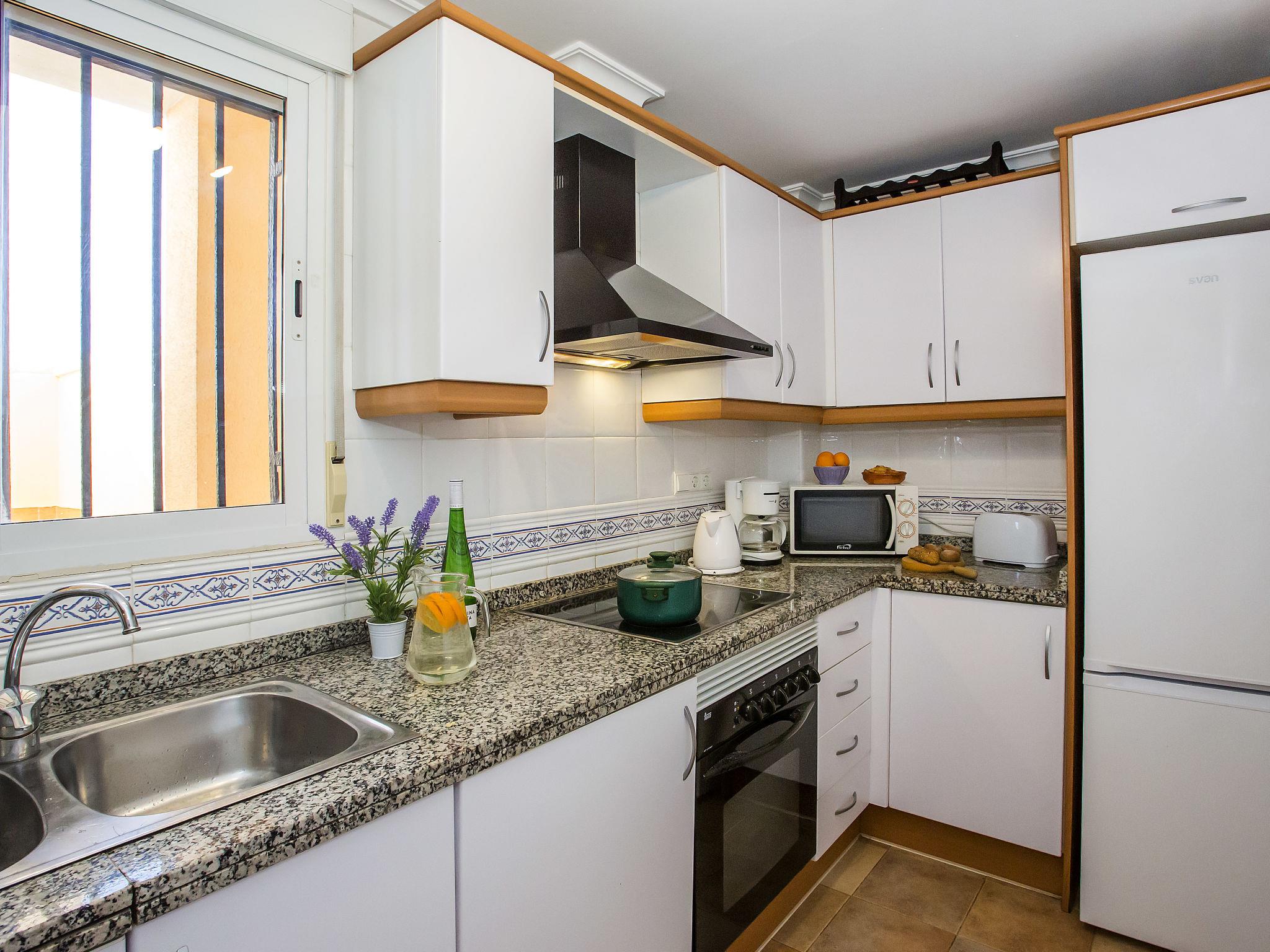 "Luz del Mediterraneo", 3-Zimmer-Wohnung 60 m2 im 2. Stock. Geräumig und hell, schön und geschmackvoll eingerichtet: Wohn-/Esszimmer mit Sat-TV, Digital-TV, DVD, Klimaanlage und Warmluftheizung. Ausgang zur Terrasse. 1 Zimmer mit 1 franz. Bett (1 x 150 cm, Länge 190 cm), Klimaanlage und Warmluftheizung. 1 Zimmer mit 2 Betten (90 cm, Länge 190 cm), E-Heizofen. Küche (Backofen, 4 Glaskeramikplatten, Toaster, Wasserkocher, Mikrowelle, Tiefkühler, elektrische Kaffeemaschine). Bad/Bidet/WC, Dusche/WC. Grosse Terrasse 25 m2 teilweise überdacht. Terrassenmöbel, Liegestühle. Schöne Sicht auf die Berge, das Schwimmbad und den Garten. Zur Verfügung: Waschmaschine, Wäschetrockner, Bügeleisen, Kinderhochstuhl, Babybett bis 2 Jahre, Haartrockner. Internet (WLAN, gratis). Parkplatz Nr. 68 (überdacht). Maximal 1 Haustier/Hund erlaubt. AT-423408-A // Reg. Nr.: ESFCTU00000304500052142800000000000000000AT-423408-A1