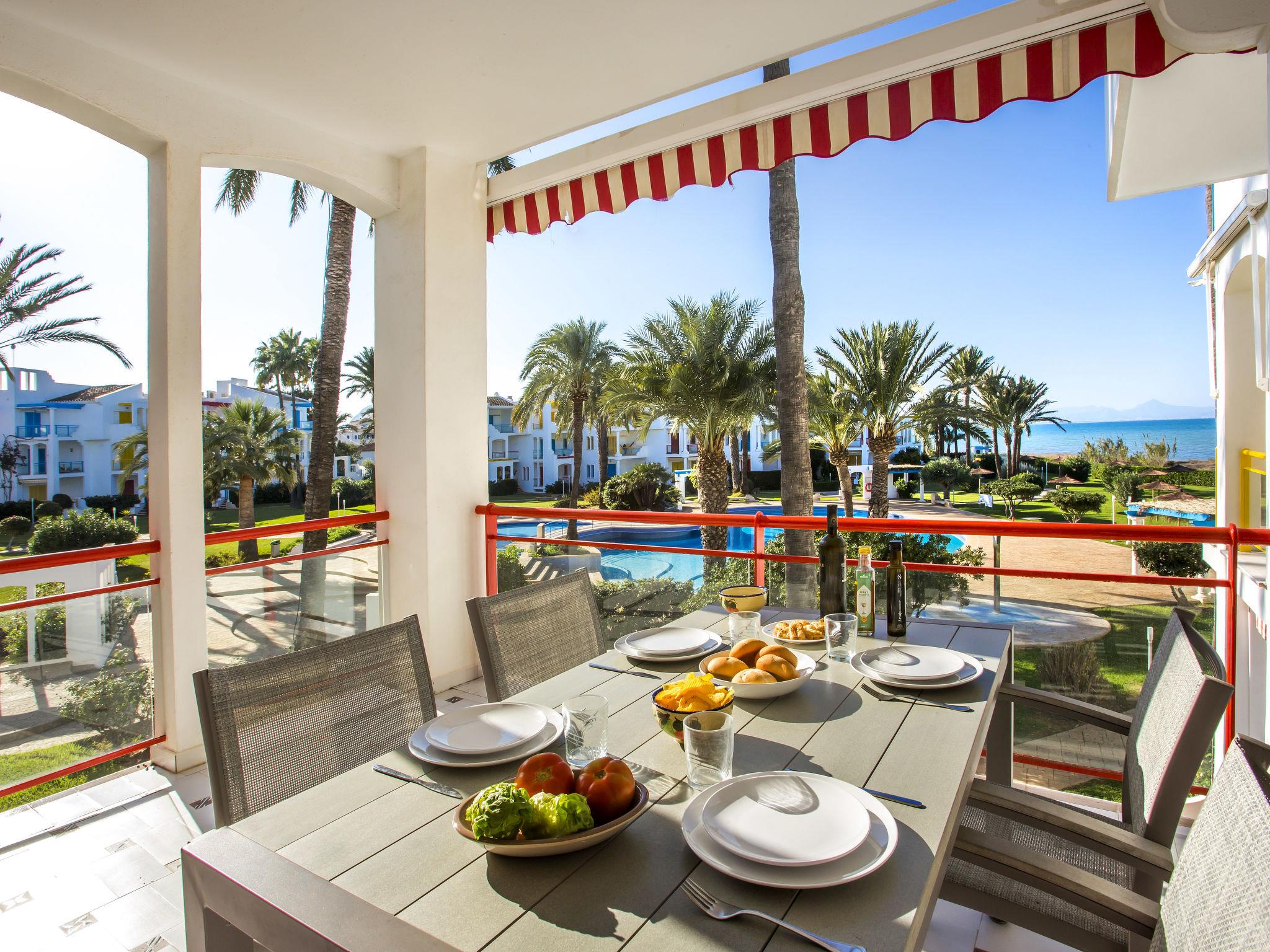 Sehr grosses, sehr schönes, sehr komfortables Appartementhaus "L'Alberca". Ausserhalb des Ortes, 6 km vom Zentrum von Dénia, ruhige, sonnige Lage, 20 m vom Meer, direkter Zugang zum Strand. Zur Mitbenutzung: schöner, gepflegter Garten (eingezäunt) mit Rasen und Pflanzen, Schwimmbad (20 x 20 m, 80 - 210 cm tief, saisonale Verfügbarkeit: 01.Jan. - 31.Dez.) mit Innentreppe. Ungleichmässige Schwimmbadform, Kinderbecken, Aussendusche, öffentliche Parkplätze auf der Strasse. Supermarkt, Restaurant, Bar, Café 250 m, Bushaltestelle 20 m, Sandstrand "Els Molins" 20 m. Golfplatz (18 Loch) 8 km, Segelschule 50 m. Nahe gelegene Sehenswürdigkeiten: Kunz Cycling Holidays 500 m. Bitte beachten: kein Fahrstuhl vorhanden. Der Besitzer akzeptiert keine Jugendgruppen.
