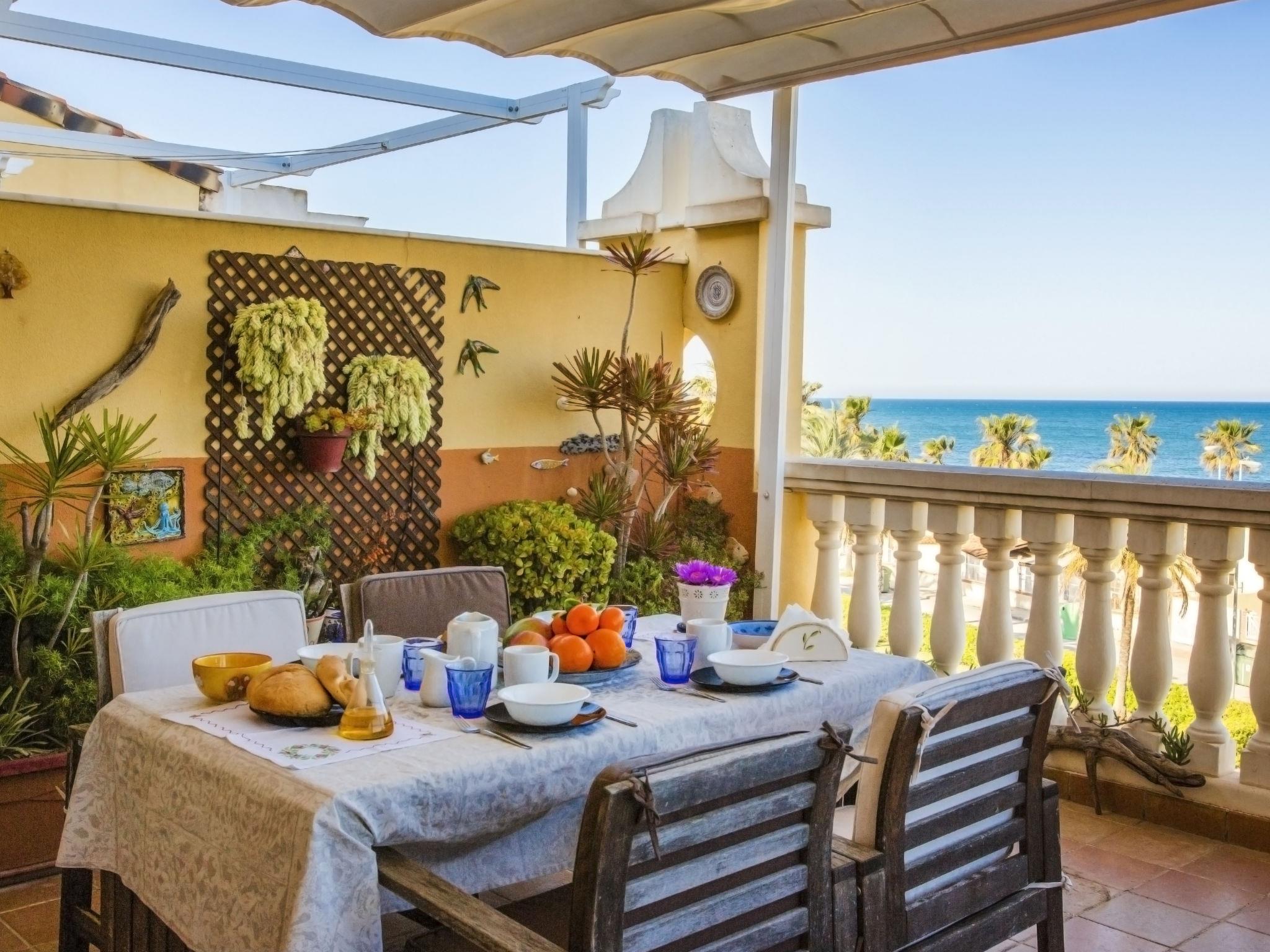 Sehr grosses, sehr schönes, sehr komfortables Appartementhaus "Atico Estrella del mar", auf 2 Stockwerken. Im Ort, 9 km vom Zentrum von Dénia, ruhige, sonnige Lage, vom Meer, 10 m vom Strand, direkter Zugang zum Strand. Zur Mitbenutzung: grosser, schöner, gepflegter Garten mit Rasen und Bäumen, 2 Schwimmbäder (45 x 16 m, 80 - 210 cm tief, saisonale Verfügbarkeit: 01.Jan. - 31.Dez.) mit Innentreppe. Kinderbecken, Aussendusche, Kinderspielplatz (Rutschbahn, Schaukel), Gemeinschaftsgarage Nr. 27. Supermarkt 450 m, Restaurant 200 m, Bushaltestelle 250 m, Bahnstation 10.5 km, Sandstrand "Les Deveses" 60 m, Kieselstrand "Playa de la Almadraba" 10 m. Der Besitzer akzeptiert keine Jugendgruppen.