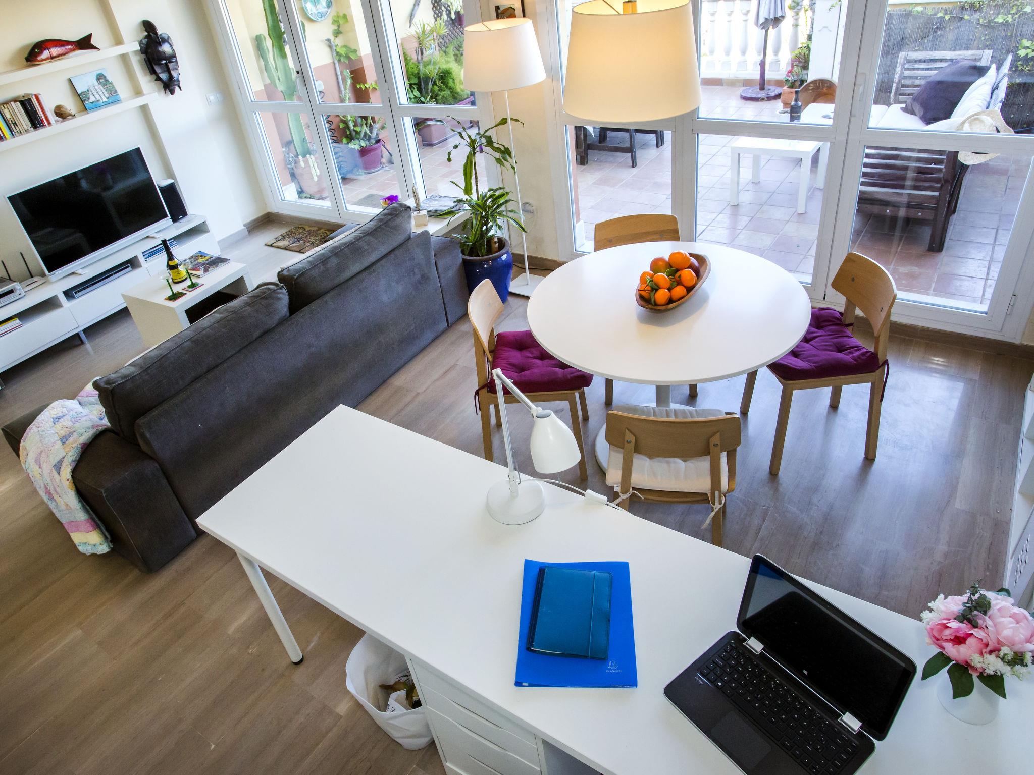 "Atico Estrella del mar", 4-Zimmer-Attikawohnung 90 m2 auf 2 Stockwerken. Geräumig und hell, sehr schön und stilvoll eingerichtet: Wohn-/Esszimmer mit Digital-TV, Klimaanlage und Warmluftheizung. Ausgang zur Terrasse. 1 Zimmer mit 2 Betten (90 cm, Länge 190 cm), Klimaanlage, Ventilator und Warmluftheizung. Küche (Backofen, Geschirrspüler, 4 Glaskeramikplatten, Mikrowelle, Tiefkühler, elektrische Kaffeemaschine). Dusche/WC. Obergeschoss: 1 Zimmer mit 1 franz. Bett (150 cm, Länge 190 cm), Bad/Bidet/WC, Klimaanlage, Ventilator und Warmluftheizung. Ausgang zur Terrasse. 1 Zimmer mit 2 Betten (90 cm, Länge 190 cm), Dusche/WC, Klimaanlage und Warmluftheizung. Grosse Terrasse Terrasse. Terrassenmöbel. Herrliche Sicht auf das Meer, die Berge, das Schwimmbad und den Garten. Zur Verfügung: Waschmaschine, Bügeleisen, Kinderhochstuhl, Babybett, Haartrockner. Internet (WLAN, gratis). Garage Nr. 27. Bitte beachten: Maximal 1 Haustier/Hund erlaubt. TV nur ES. R000000001