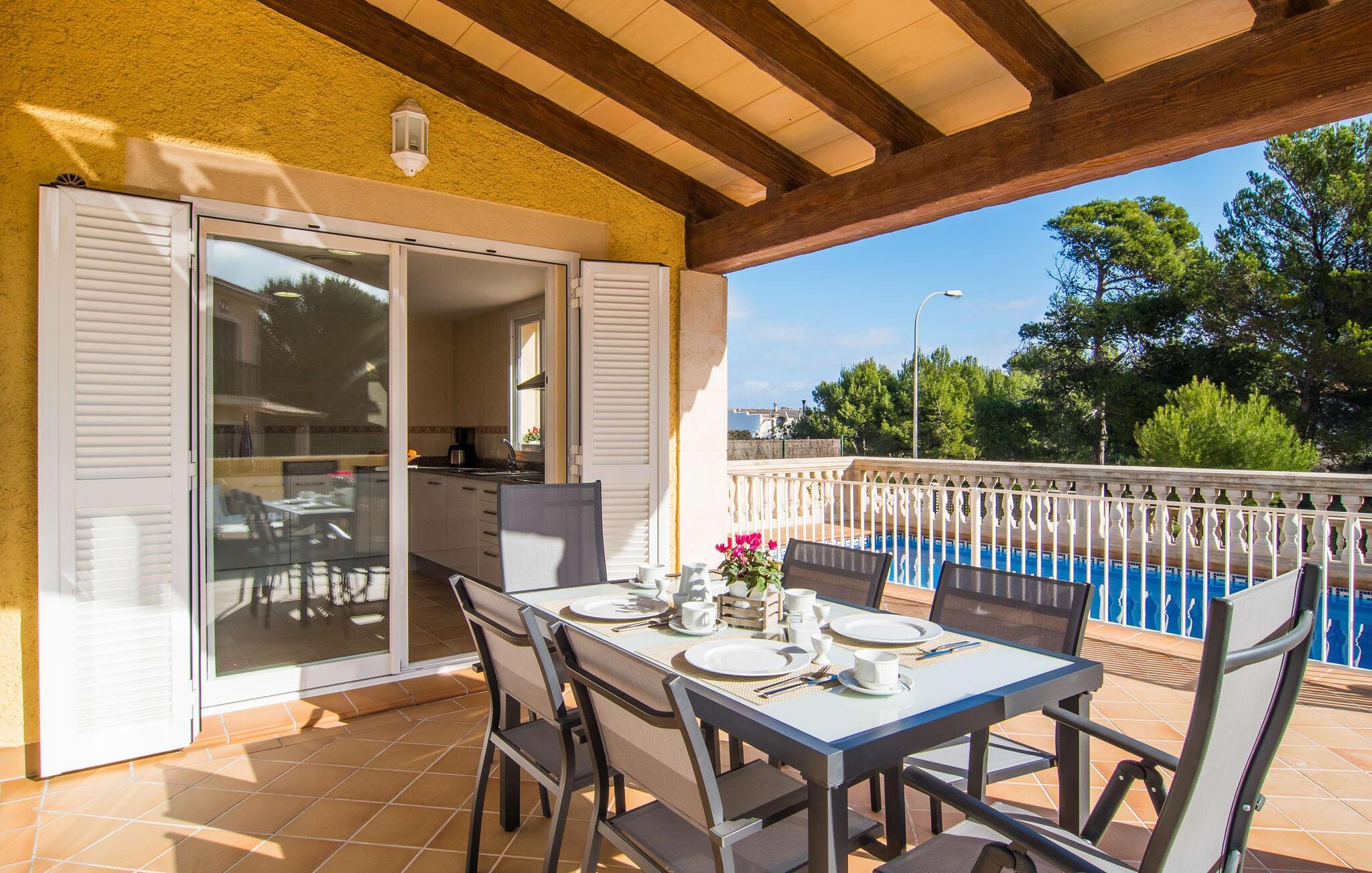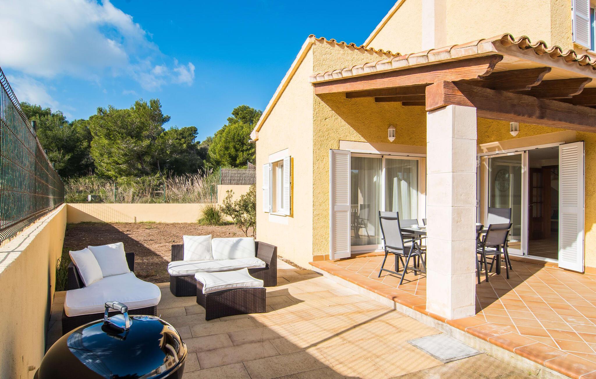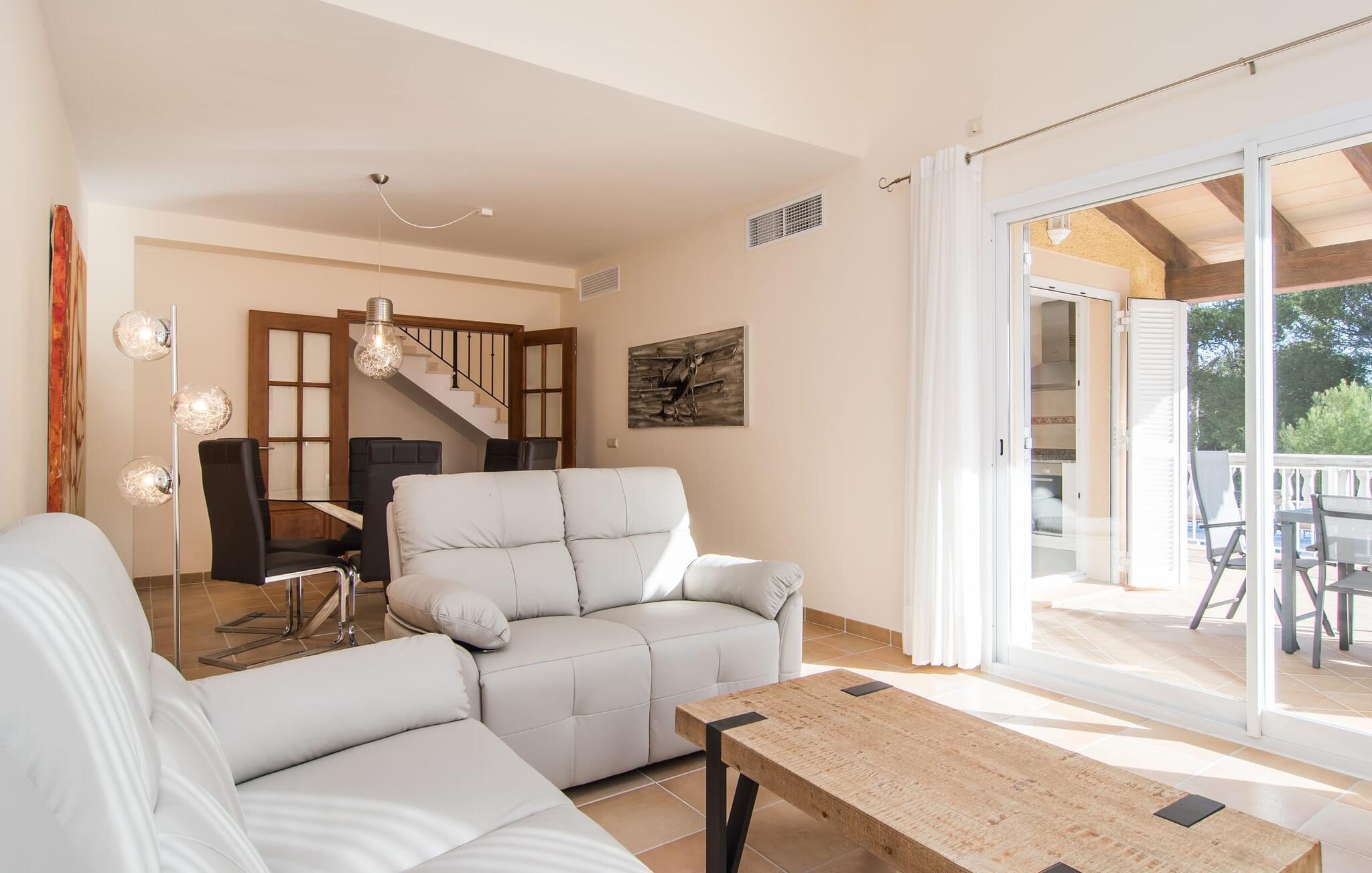 Ihre Villa liegt auf einem 720 m² großen Grundstück im wunderschönen Küstenort Cala Mesquida, einem beliebten Reiseziel an der Ostküste, unweit von Cala Rajada mit seinem ganz eigenen authentischen Charme. Cala Mesquida ist sowohl für einen Familien- als auch für einen Aktivurlaub perfekt geeignet. Besonders interessant ist dieses Anwesen für Familien mit kleinen Kindern, da der 6 x 3 m große, abfallende Pool komplett eingezäunt werden kann: Das bietet zusätzliche Sicherheit, wenn Ihre kleinen Lieblinge einmal alleine losziehen sollten, während Mama oder Papa gemütlich einen Café trinken Leche auf der überdachten Terrasse. Eine Außendusche gehört zum Wohlfühlpaket: Sie können sich bei Bedarf oder nach einem Strandausflug erfrischen, ohne Sand ins Haus zu schleppen. Direkt neben dem Pool finden Sie bequeme Sonnenliegen; Eine Outdoor-Lounge lädt zum Entspannen ein. Frisch gegrillten Fisch können Sie am großen Esstisch im Schatten der Terrasse genießen: Ein Holzkohlegrill ist selbstverständlich ebenso vorhanden wie die indirekte Poolbeleuchtung, die das Anwesen abends zauberhaft erleuchtet. Unter dem klaren Sternenhimmel Mallorcas und dem sanften Rauschen des Meeres im Ohr geraten Sie garantiert in Ohnmacht!