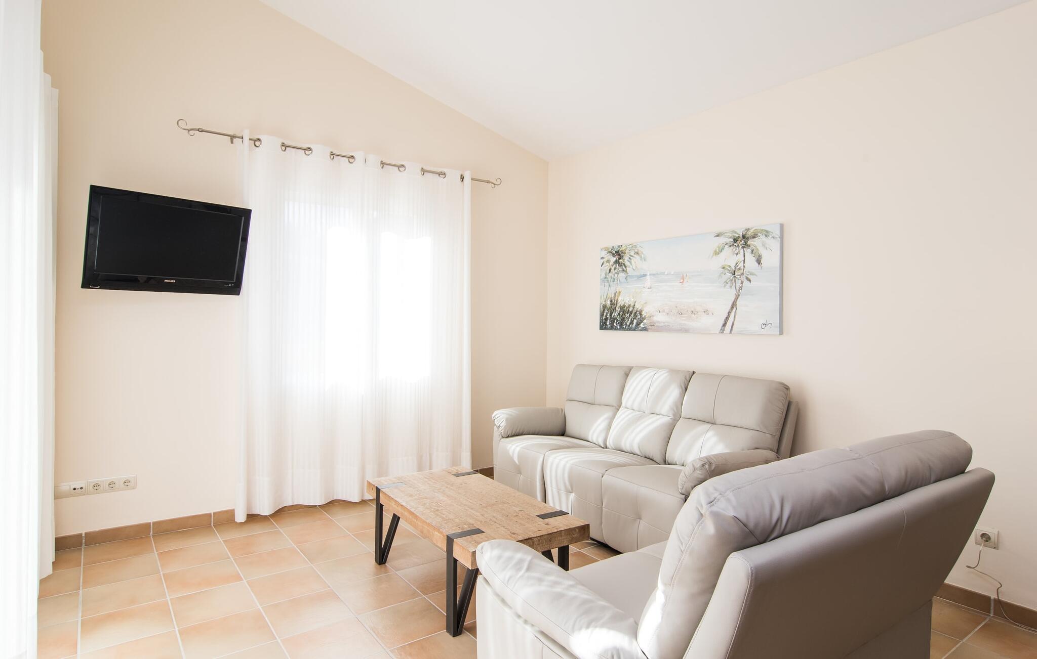 Der Innenbereich des 165 m² großen Hauses, das sich über das Erd- und Obergeschoss erstreckt, empfängt Sie mit warmen, gedeckten Farben und behaglicher Gemütlichkeit. Moderne Kunst an den Wänden setzt interessante Akzente; Elegante Lichtobjekte in Form übergroßer Glühbirnen sind ein echter Hingucker. Der typisch mediterrane terrakottafarbene Steinboden kühlt den Innenraum an warmen Tagen. Darüber hinaus sind alle Räume mit einer Klimaanlage ausgestattet, sodass Sie die Temperatur an Ihre Bedürfnisse anpassen können. Im Erdgeschoss finden Sie den Wohnbereich mit Sofagarnitur, Flachbild-TV und großem Esstisch aus Glas, eine voll ausgestattete Küche mit direktem Zugang zur Terrasse, zwei Schlafzimmer mit einem Doppelbett oder zwei Einzelbetten , sowie ein tageslichtdurchflutetes Badezimmer mit großem Waschbecken und Badewanne. Im Obergeschoss befindet sich ein weiteres Schlafzimmer mit Doppelbett und eigenem Bad. Alle Zimmer verfügen über umfangreiche Ankleideschränke zur Unterbringung Ihrer Urlaubsgarderobe, sodass Sie immer das richtige Outfit zur Hand haben. So sehr Sie sich auch einfach nur in der Villa aufhalten möchten: Auch in der Umgebung gibt es viel zu entdecken und zu erleben!