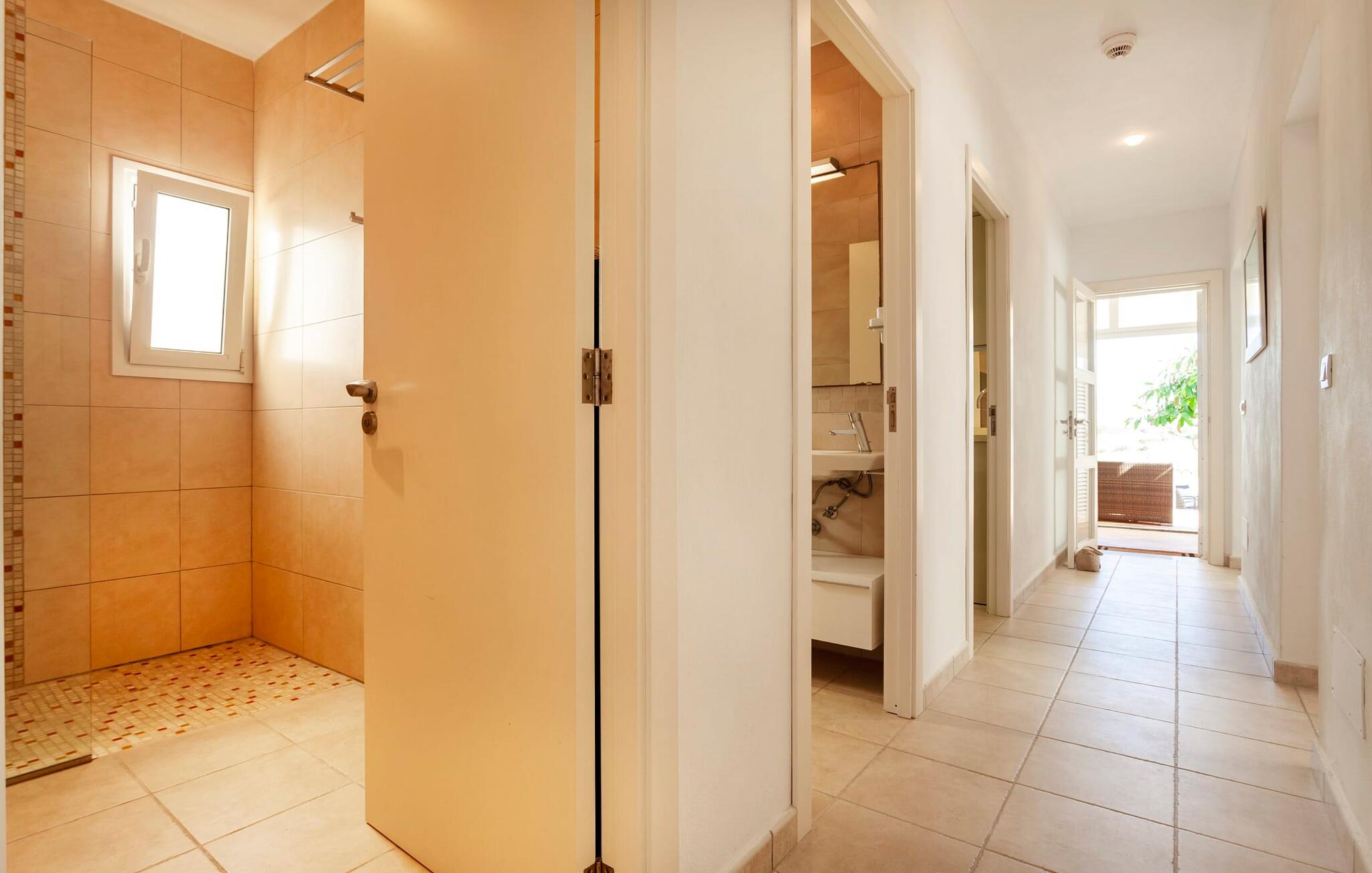 Das Innere der Villa lässt sich in wenigen Worten zusammenfassen: hell, sommerlich, freundlich, modern – und stilvoll. Alles passt perfekt zusammen, die Farben reichen von frischem Weiß über romantische Cremetöne bis hin zu natürlichen Erdtönen. Alle Zimmer liegen auf einer Ebene – besonders wenn Sie mit Kindern reisen, werden Sie den Verzicht auf Treppen im Wohnbereich zu schätzen wissen. Allerdings gibt es eine kleine Treppe mit Geländer – aber diese wird Ihrem Nachwuchs bestimmt gefallen. Eines der drei klimatisierten Schlafzimmer ist mit einem tollen Etagenbett ausgestattet. Das untere Bett ist sogar groß genug für zwei Personen, falls die Kinder Sie brauchen, um dort zu bleiben, bis sie einschlafen. Die anderen beiden Schlafzimmer verfügen über eine mindestens ebenso schöne Einrichtung. Neben gemütlichen Doppelbetten stehen Ihnen auch die großen Kleiderschränke für Ihre Urlaubsgarderobe zur Verfügung. Auch der offene Ess- und Wohnbereich lockt mit einem Ledersofa, einem Kamin und einem großen Esstisch mit hübschen Korbstühlen. Die Küche ist mit hochwertigen Geräten ausgestattet und besticht vor allem durch ein Fenster zur Terrasse, das den Blick auf die umliegende Landschaft ermöglicht. Zwei schicke Badezimmer, jeweils mit raumhohen Duschen, runden die Unterkunft ab.