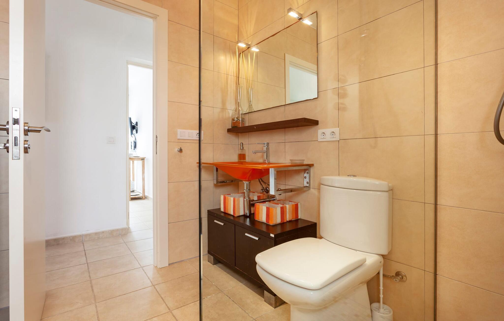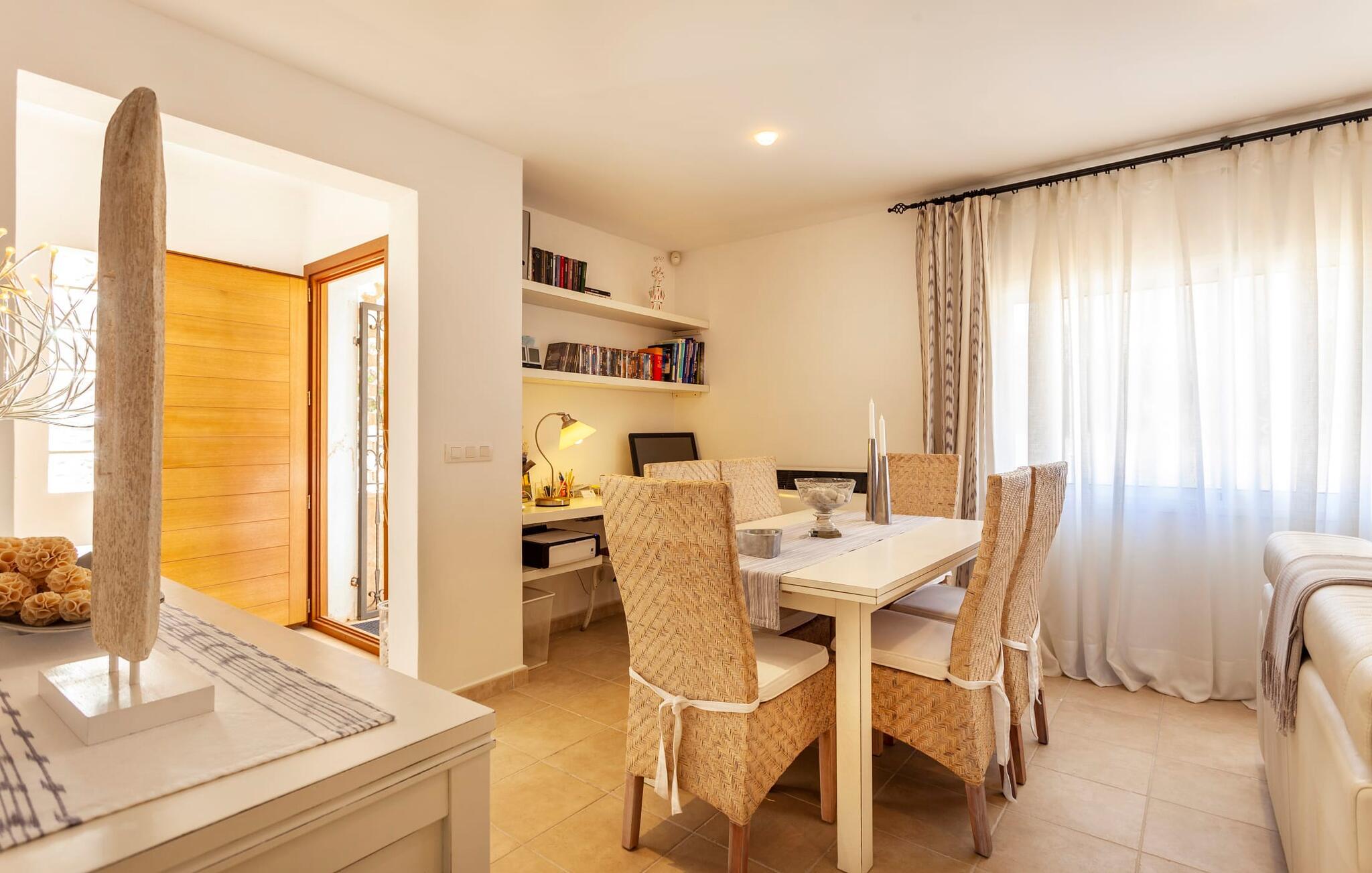 Zentral gelegen, ein ebenerdiges Gebäude und geschmackvoll gestaltet: Das ist die Villa „Del Mar 37“ in Colònia de Sant Pere im Osten Mallorcas. Das Haus liegt in einer typischen Wohnstraße am Rande des beschaulichen Städtchens – so fühlen Sie sich durch die direkten Nachbarn nicht einsam, müssen aber dank Sichtschutzwänden auch nicht auf Privatsphäre verzichten. Hinter dem gepflegten Haus entdecken Sie nicht nur das Mittelmeer in unmittelbarer Nähe, sondern auch einen hübschen Außenbereich mit vielen einladenden Sitzgelegenheiten. Direkt am Haus können Sie beispielsweise an einem großen Esstisch auf der überdachten Terrasse sitzen oder direkt daneben unter schickem Sonnenschutz auf den bequemen Loungemöbeln entspannen. Von einer Dachterrasse darüber haben Sie einen wunderschönen seitlichen Blick auf das Meer. Von der Wohnebene führt eine kleine Treppe hinauf auf eine weitere wunderschön gepflasterte Terrasse, eingerahmt von einer Hecke, einem Mäuerchen und einem imposanten Baum: Der ideale Ort für ein Nickerchen auf einer der Sonnenliegen oder ein kühles Getränk und ein gutes Buch.