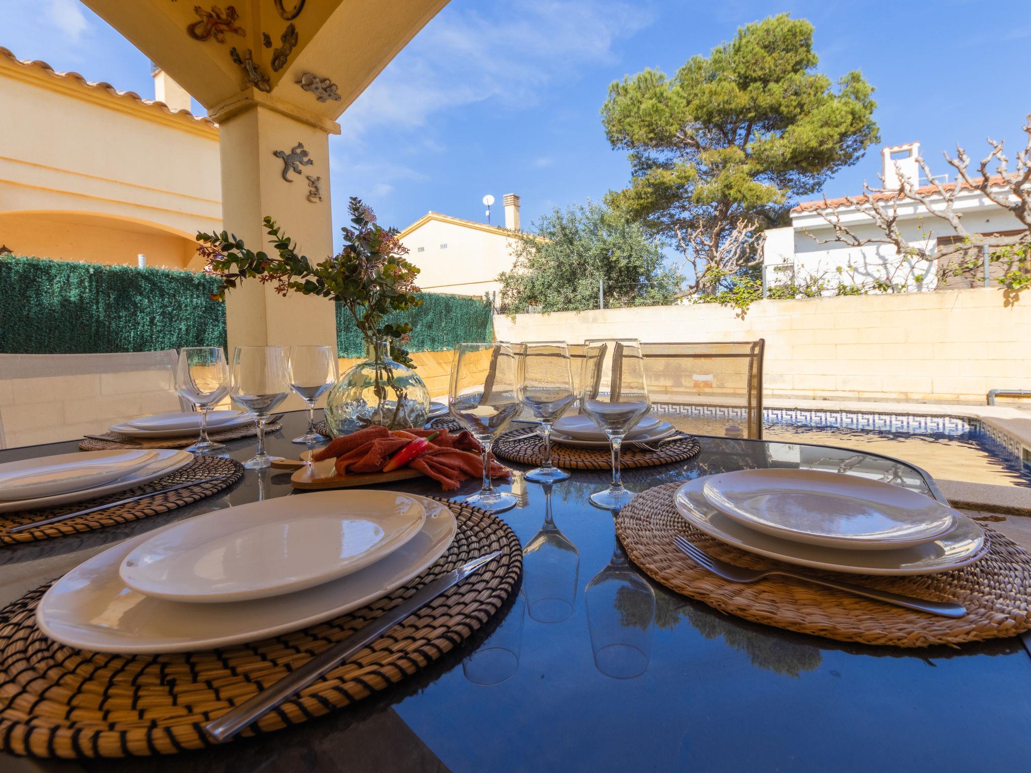 "Sargantana", 6-Zimmer-Haus 118 m2 auf 2 Stockwerken. Zweckmässig und komfortabel eingerichtet: Wohn-/Esszimmer mit Esstisch und Digital-TV. Ausgang zum Gartensitzplatz. 1 Doppelzimmer mit 2 Betten (90 cm, Länge 190 cm), Dusche/WC. 1 Doppelzimmer mit 1 Ausziehbett (2 Pers. 2 x 90 cm, Länge 190 cm). 1 Doppelzimmer mit 2 Betten (90 cm, Länge 190 cm). Offene Küche im Eingang (Backofen, 4 Glaskeramikplatten, Toaster, Mikrowelle, Tiefkühler, elektrische Kaffeemaschine) mit Bar. Bad/WC. Klimaanlage, Warmluftheizung. Obergeschoss: Wohn-/Schlafzimmer mit 1 Doppeldiwanbett (135 cm, Länge 190 cm), Digital-TV, Klimaanlage und Warmluftheizung. Ausgang zur Terrasse. 1 Doppelzimmer mit 3 Betten (90 cm, Länge 190 cm). Dusche/WC. Klimaanlage, Warmluftheizung. Terrassenmöbel, Gartengrill, Liegestühle, Loggia. Zur Verfügung: Waschmaschine. Internet (WLAN, gratis). Parkplatz (eingezäunt) beim Haus. Geeignet für Familien. Maximal 2 Haustiere/Hunde erlaubt. HUTTE002525 // Reg. Nr.: ESFCTU00004301900056267300000000000000000HUTTE0025252