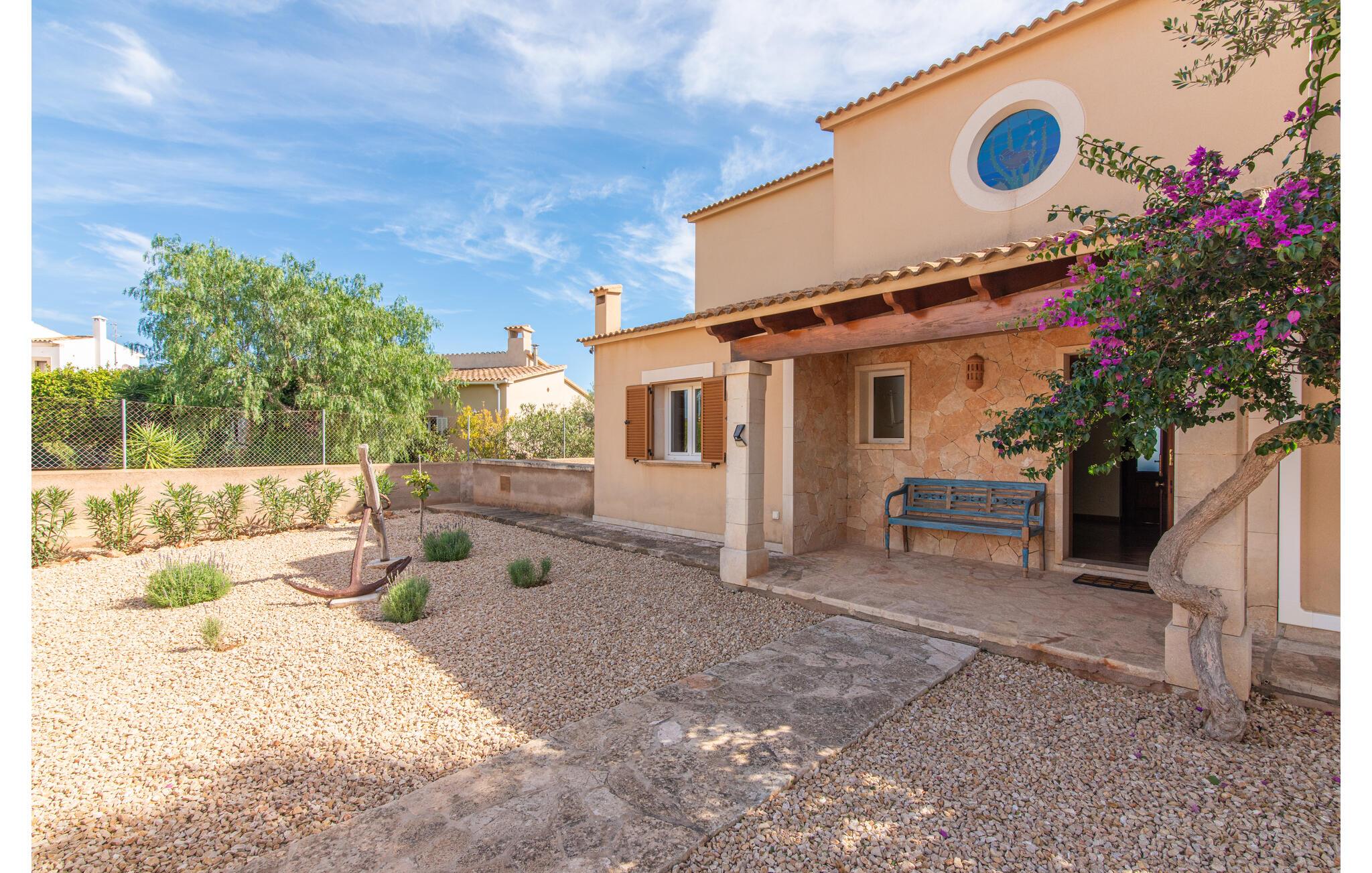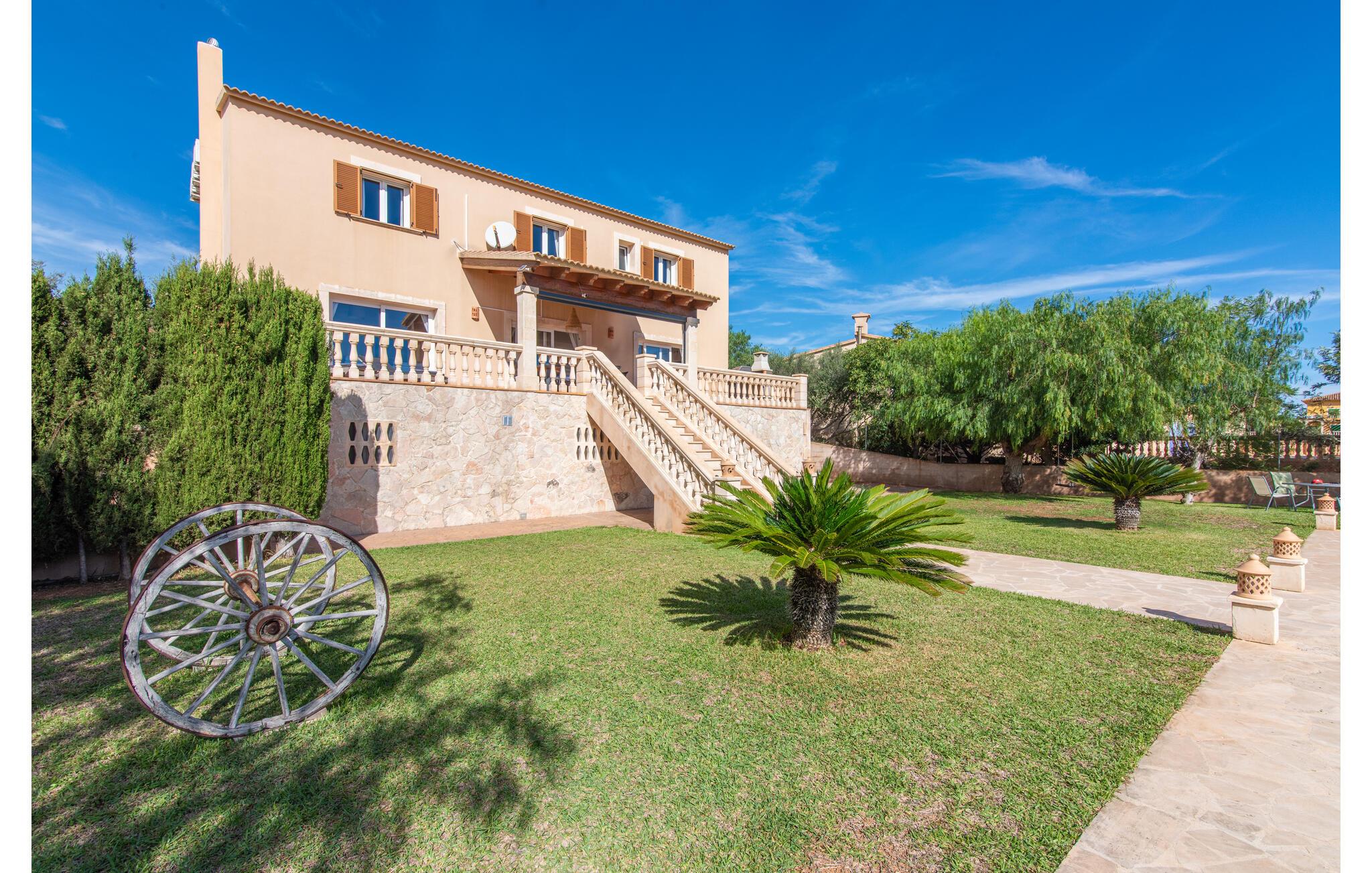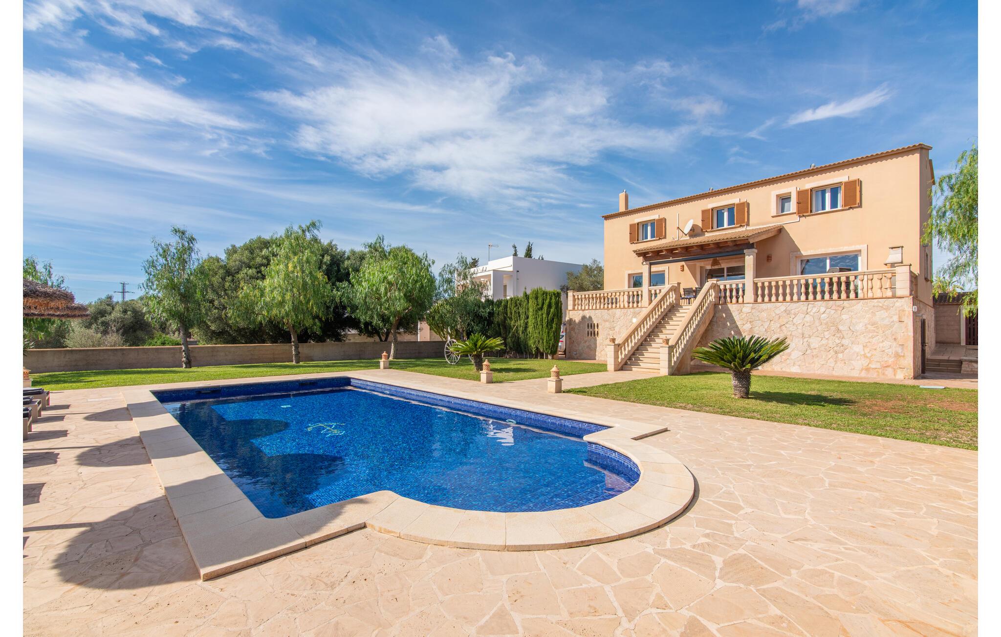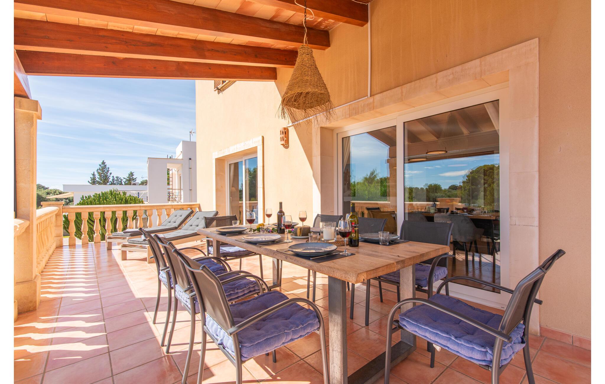 Das wunderschöne „Dues Illes“ liegt am Rande eines Villenviertels. Vom schönen Ferienhaus gelangen Sie über eine Treppe vor der überdachten Terrasse in den besonders gepflegten Garten. Neben Rasenflächen gibt es einen tollen Baumbestand, der für natürlichen Schatten und eine gemütliche Atmosphäre sorgt. Mittelpunkt der Anlage ist natürlich der geflieste Pool mit Sonnenliegen, trendigen Strohschirmen und einer gemütlichen Chill-Out-Lounge. Eine romantische Sitzecke unter schattenspendenden Bäumen lädt zum Lesen ein oder dient als luftiges Gartenbüro. Wer aktiv sein möchte, kann dies beim Tischtennis, Wasserball, Basketball oder Volleyball tun. Die große überdachte Terrasse mit Esstisch und zwei Grillstationen – einem gemauerten Grill mit Holzkohle und einem mobilen Gasgrill – bietet bei geselligen Mahlzeiten einen herrlichen Ausblick.