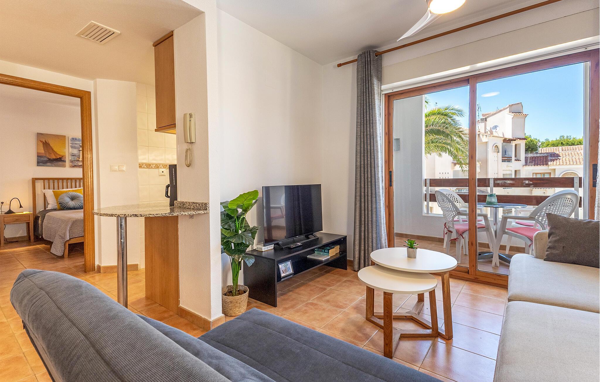 Diese geschmackvoll eingerichtete Ferienwohnung lädt Sie zu erholsamen Tagen an der Costa Blanca ein. Profitieren Sie von der zentralen Lage in einer gepflegten Anlage mit Pool und kurzen Wegen zu Meer, Promenade und Ausflugszielen. Machen Sie es sich im ansprechend gestalteten Wohnbereich gemütlich. Komfortable Sofas, ein Fernseher und viel Tageslicht sorgen für eine entspannte Atmosphäre. Genießen Sie Ihre Mahlzeiten am Esstisch und bereiten Sie Snacks für Ihre Ausflüge in der praktischen Küchenzeile zu.