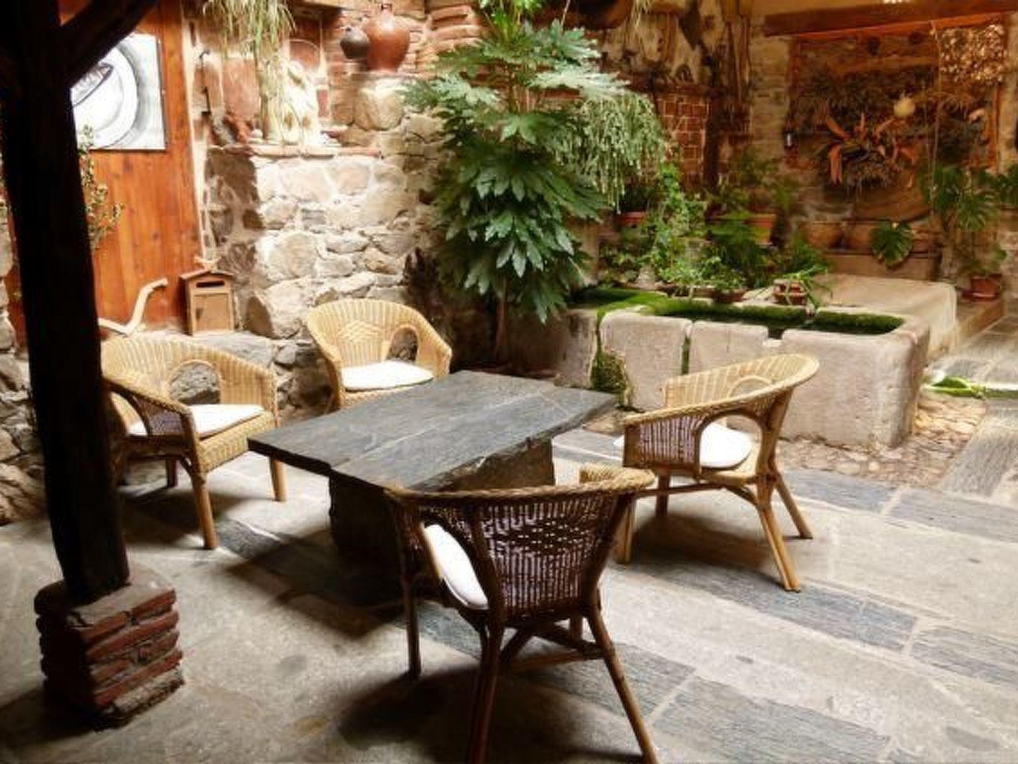 Das Gebäude stammt aus dem 18. Jahrhundert, als es zum Waschen von Wolle genutzt wurde, und wurde sorgfältig als Landhaus mit Holz, Stein und recycelten Materialien restauriert. In der Eingangshalle befindet sich ein geschlossener Innenhof mit einem natürlichen Brunnen aus dem Jahr 1779. Im Erdgeschoss befindet sich ein Bad mit Steindusche und die Küche ist mit Gasherd, Kamin, Kühlschrank, Mikrowelle, Geschirrspüler, Besteck und Geschirr und allen anderen notwendigen Küchenutensilien ausgestattet. Das Wohnzimmer hat einen Kamin mit kostenlosem Brennholz, sowie mehrere Sofas, TV und WIfi. Es gibt auch ein Esszimmer mit einem Tisch für bis zu acht Personen. Im ersten Stock gibt es ein Badezimmer mit einer Badewanne. Hier befinden sich auch die drei Schlafzimmer. Das erste mit einem Doppelbett und einem Einzelbett, das zweite mit zwei Einzelbetten und das dritte mit einem Doppelbett. Ein Kinderbett und ein Zusatzbett können kostenlos zur Verfügung gestellt werden.