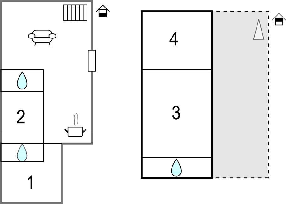 Badezimmer 4m2 (nr. 1) - WC. Warmes und kaltes Wasser. Dusche