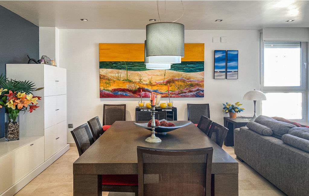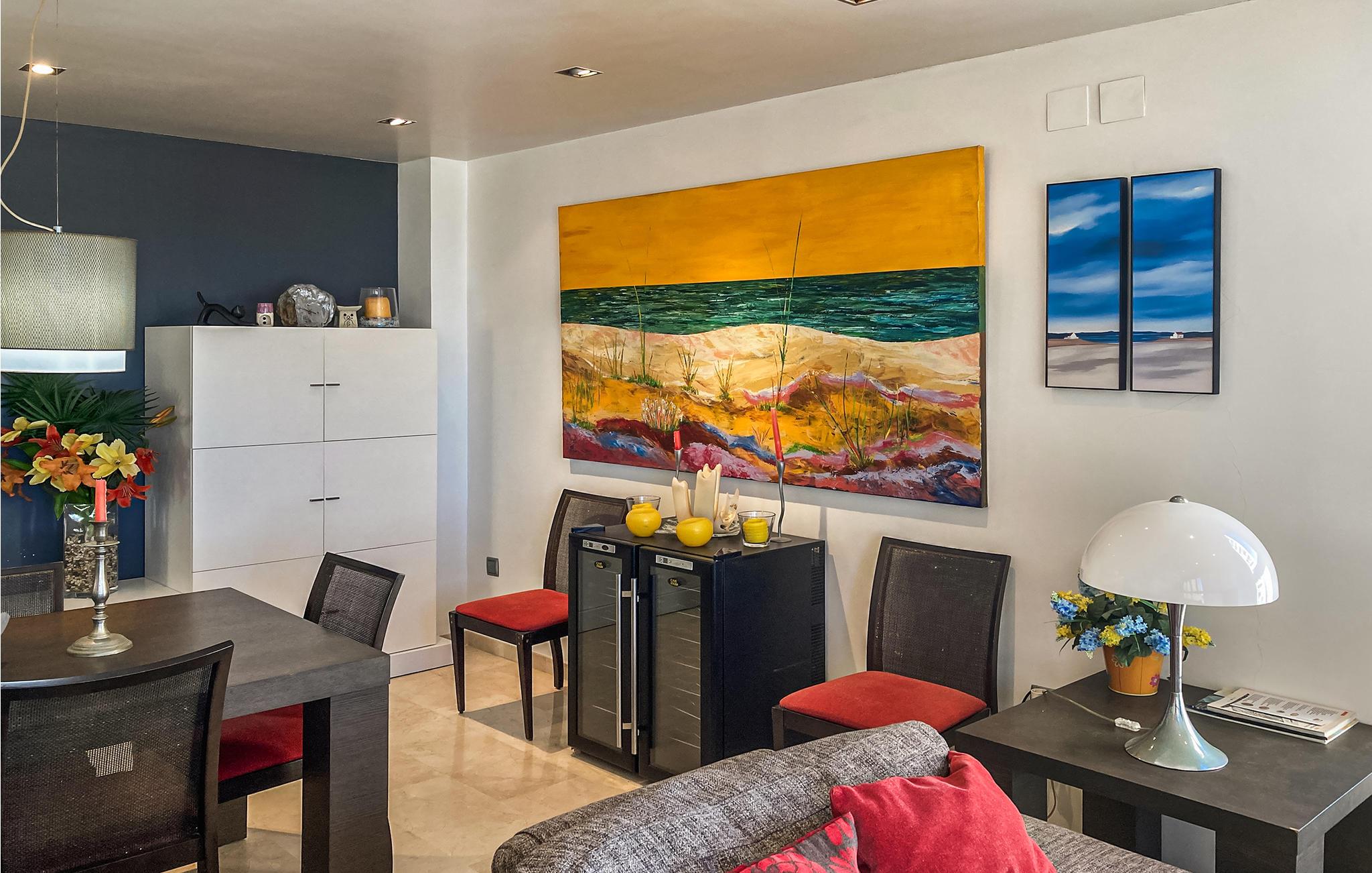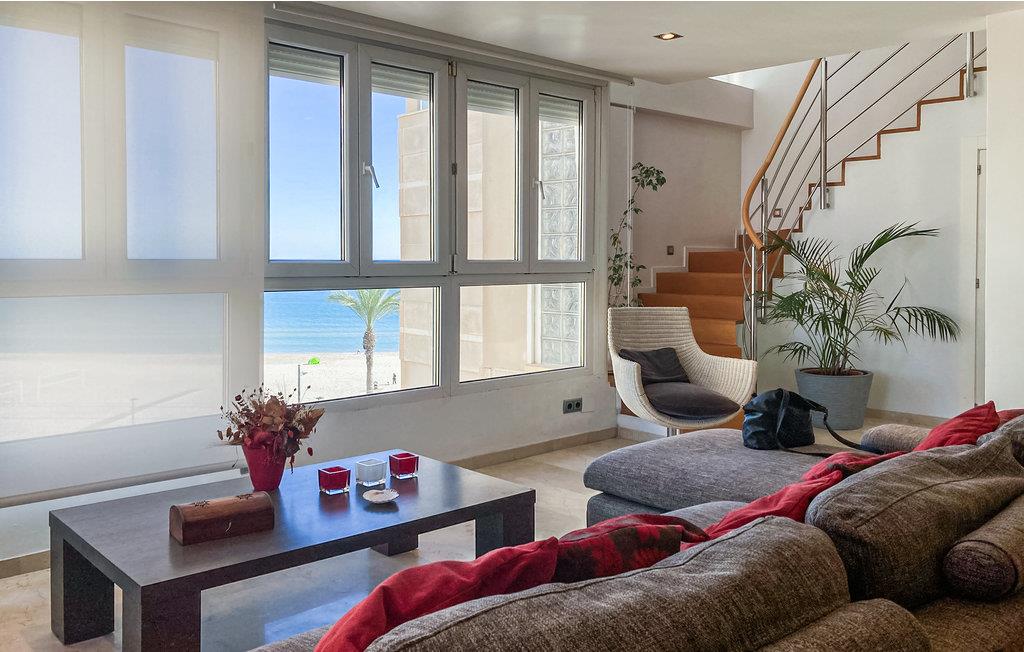 Diese geräumige Ferienwohnung in den oberen Etagen eines Apartmenthauses heißt Sie direkt am Strand willkommen. Die geschmackvolle Einrichtung und großen Fenster erfüllen die Räume nicht nur mit natürlichem Licht, sondern sorgen auch dafür, dass Sie mit Blick auf den Strand und das Meer auf dem Sofa sitzen oder beim Grillen auf der Dachterrasse Ihren Blick über das Meer schweifen können. Entspannen Sie in der Whirlpool-Badewanne oder nutzen Sie den Gemeinschaftspool, in dem Sie am Morgen die ersten Bahnen ziehen können, während Ihre Lieben noch schlummern oder schon das Frühstück zubereiten. Auch Sport kommt nicht zu kurz, denn Sie können sich beim Paddle-Tennis verausgaben, bevor Sie zum Strand gehen.