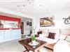 Machen Sie es sich im stilvollen und lichtdurchfluteten Innenbereich gemütlich, der mit einem großzügigen Wohnzimmer und einer voll ausgestatteten Küche zum Verweilen einlädt. Genießen Sie gemeinsame Kochabende oder entspannen Sie sich mit einem guten Buch auf der bequemen Couch, während die großen Fenster eine angenehme und helle Atmosphäre schaffen.