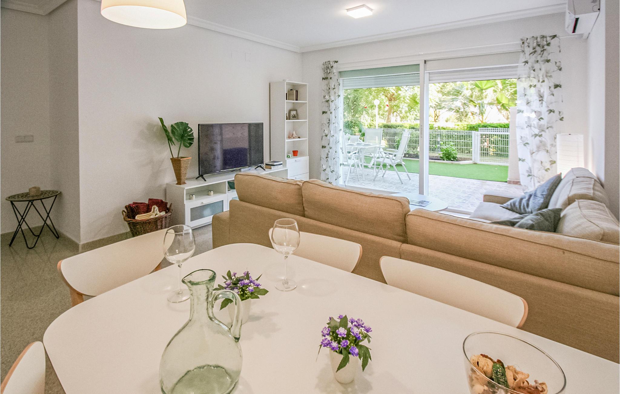 Diese einladende Ferienwohnung liegt nur 5 Minuten vom Strand entfernt in El Campello, Alicante. Die Wohnung verfügt über 3 Schlafzimmer, 2 Bäder, eine voll ausgestattete Küche, ein großes Wohnzimmer und eine große Terrasse mit einem kleinen Gartenbereich, der vom Wohnzimmer aus zugänglich ist. Hier können Sie mit Ihren Lieben speisen und bei den angenehmen Temperaturen entspannen. Der Komplex verfügt auch über einen Gemeinschaftspool, in dem Sie an warmen Sommertagen ein Bad nehmen können. Die Ferienwohnung hat eine moderne und avantgardistische Dekoration und bildet den idealen Rahmen für einen gemütlichen Aufenthalt. Ihre Lage ist ideal, da sie 250 Meter vom Strand und 600 Meter von Bars, Restaurants und Einkaufsmöglichkeiten entfernt ist.