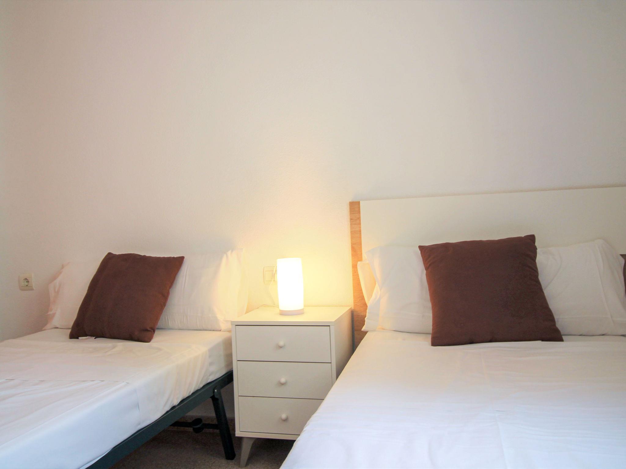 "Bitacoras", 3-Zimmer-Wohnung 75 m2. Objekt geeignet für 5 Erwachsene. Geräumig und hell, einfach und zweckmässig eingerichtet: Wohn-/Esszimmer 21 m2 mit Klimaanlage, Ventilator und Warmluftheizung. Ausgang zur Loggia. 1 Zimmer 9 m2 mit 2 Betten (90 cm, Länge 200 cm), Klimaanlage, Ventilator und Warmluftheizung. 1 Zimmer 9 m2 mit 1 franz. Bett (150 cm, Länge 200 cm), Dusche/WC, Klimaanlage, Ventilator und Warmluftheizung. Küche 8 m2 (4 Glaskeramikplatten, Toaster, Wasserkocher, Mikrowelle, Tiefkühler, elektrische Kaffeemaschine, Kapseln für die Kaffeemaschine (Dolce Gusto) extra). Dusche/WC. Terrasse 11 m2. Terrassenmöbel. Sicht auf das Meer, den Garten und die Landschaft. Zur Verfügung: Waschmaschine, Bügeleisen. Internet (WLAN, gratis). Parkplatz Nr. 58 (-2), Höhe 230 cm. Geeignet für Familien. Internet (Wireless LAN, gratis). Sehr gut geeignet für mobiles Arbeiten/Workation. VT-489279-A