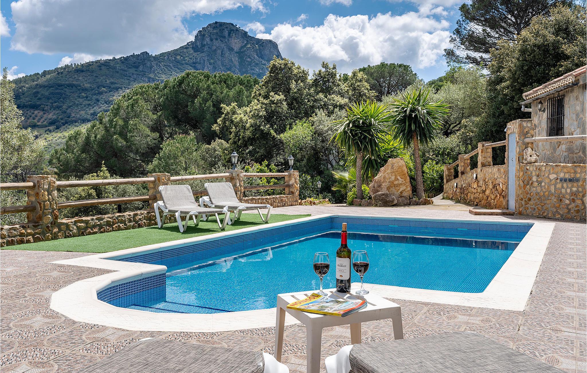 Treten Sie ein in ein unglaubliches Ferienhaus mit authentischem Charakter und gemütlichem Inventar. Hier werden Sie sich in der Atmosphäre der Natürlichkeit, die durch die Stein und Holzdetails entsteht, wohlfühlen können und einen unbeschwerten Urlaub in Andalusien verbringen. Im Außenbereich erwarten Sie einige unterteilte Bereiche, wie überdachte Terrassen, ein Pool in der prallen Sonne und ein gemauerter Grill neben einer bewachsenen Bedachung. Genießen Sie den einzigartigen Panoramablick, der Ihnen den Atem rauben wird, während Sie Ihren köstlichen Wein der Region genießen oder brutzeln Sie sich eine Mahlzeit, um Abende besonders schön ausklingen zu lassen.