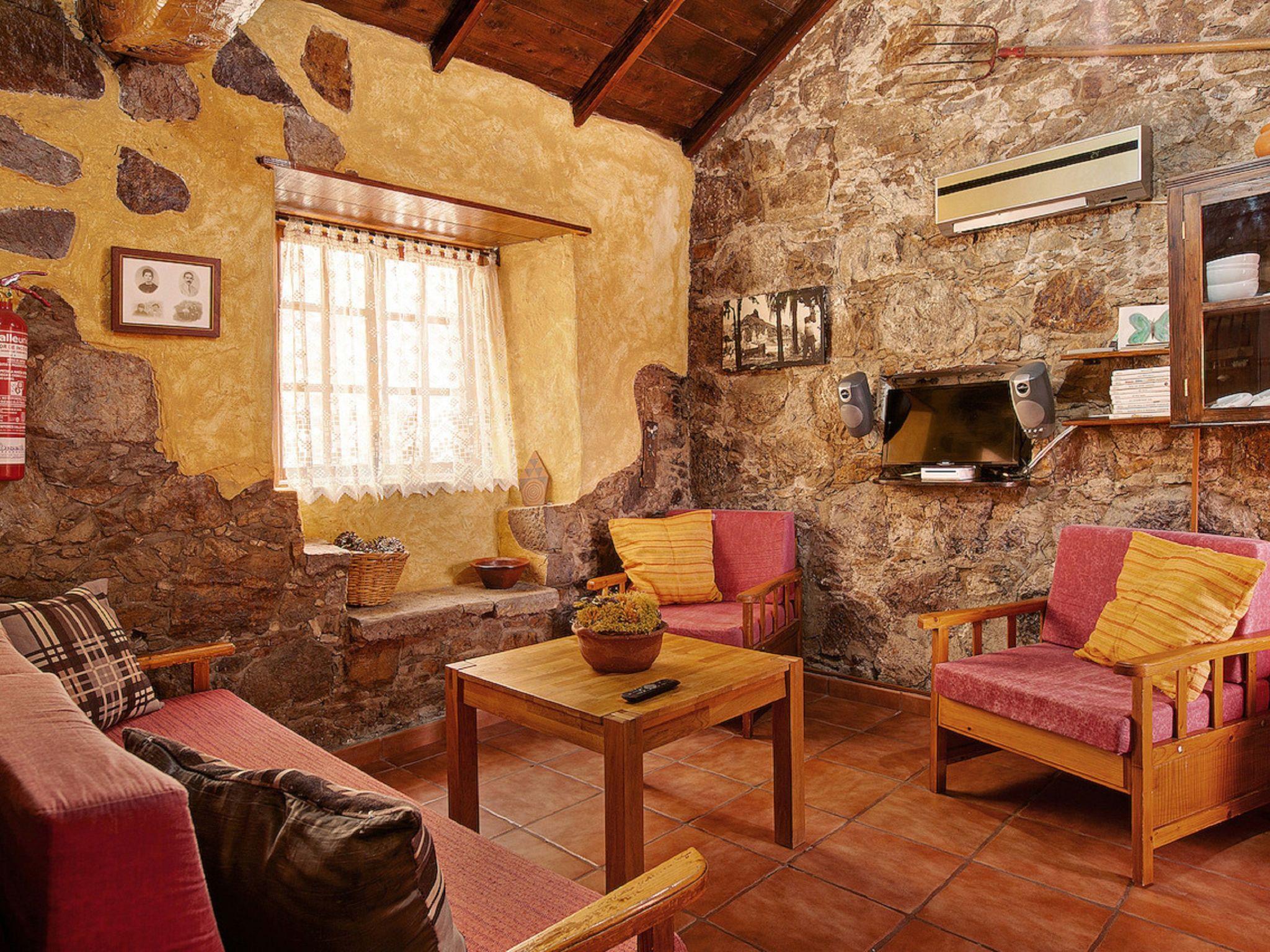 Traditionelles kanarisches Landhaus, restauriert, über 250 Jahre alt, aus Stein mit Holzböden, wobei die ursprüngliche Struktur und die ursprünglichen Baumaterialien erhalten geblieben sind. Die Möbel wurden erhalten und restauriert, ohne auf den Genuss und Komfort der heutigen Errungenschaften zu verzichten. Sie wurden mit Elektrogeräten und anderen Elementen ausgestattet, die den Aufenthalt komfortabel machen. Auf den beiden Terrassen können Sie sternenklare Nächte genießen und haben gleichzeitig viel Platz zum Grillen, Sonnenbaden oder Spielen der Kinder. (kostenloses WLAN – Wii-Videokonsole) Es ist sehr einfach, die gesamte Insel kennenzulernen. Ausgehend von der Gegend, von Pepitas Haus aus, führen Straßen und Wege in alle Richtungen der Insel, kurz gesagt, ins Zentrum von Gran Canaria. Kurz gesagt, das Landhaus „Pepita la de las Flores“, das erste Landhaus in der gesamten Gemeinde Tejeda, ist bei den älteren Leuten des Ortes gut bekannt, da es das erste Geschäft in der Gegend war, nachdem Juan, Pepitas Ehemann, mit etwas Geld aus Kuba angekommen war und sie dieses kleine Geschäft eröffnen konnten. Unser Landhaus verfügt über geräumige Zimmer mit Blick auf die spektakuläre Landschaft, eine voll ausgestattete Küche und eine Vielzahl moderner Dienstleistungen, die Ihren Aufenthalt beleben. Ein erholsames Wochenende oder einen Urlaub zu genießen war noch nie so einfach und erschwinglich. Alle Leistungen sind im Preis inbegriffen. Kapazität 6 Personen 1 Doppelzimmer 1 Schlafzimmer mit zwei Einzelbetten 1 zusätzliches Doppelbett Küche-Esszimmer-Wohnzimmer Badezimmer Terrasse Parkplatz Haustiere erlaubt Terrassenfläche1 55 m2 Terrassenfläche2 15 m2 Grundstücksfläche 800 m2 Ausstattung Schlafzimmer: Bettwäsche und Kinderbett. Küche: Küchengeschirr, Elektroherd, Mixer, Kaffeemaschine, Wasserkocher, Mikrowelle, Toaster usw. Multimediales Fernsehen mit über 7.500 Songs aller Genres, Musik, Videos von den Kanarischen Inseln und der Umgebung, Informationen zu Wanderwegen, Natur, Artenvielfalt, Restaurants usw. Wii-Konsole, kostenloses WLAN. Badezimmer: Waschbecken, Dusche, Waschmaschine, Trockner, Haartrockner und Bügeleisen. Terrasse und Garten: Grill, Sonnenliegen, Tische und Stühle im Freien. Heizung im ganzen Haus.