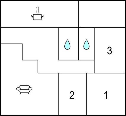 Toilette 3m2 (nr. 1) - WC. Warmes und kaltes Wasser