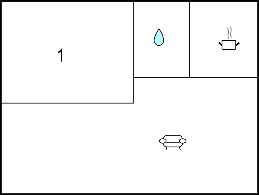 Badezimmer 5m2 (nr. 1) - WC. Warmes und kaltes Wasser. Dusche