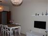 Der kombinierte Wohn- Essraum ist möbliert mit einem großen Sofa und gegenüberliegendem Sidebord, sowie einem Esstisch mit 4 Sitzplätzen. Es gibt einen großen Flachbildschirm mit Sat-TV.