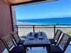 Das absolute Highlight und der wohl meist genutzte Platz ist auf dem überdachten Balkon mit herrlichem Blick über den Strand auf das Meer. Hier stehen ein Esstisch mit 4 Stühlen und sowie 2 bequeme verstellbare Stühle mit Auflagen und Beistelltisch.