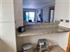 Der Salon ist hell und in 2 Bereiche geteilt. Im vorderen Teil ist der Essbereich, von dem es eine große Durchreiche zur Küche gibt. Vor den großen Glastüren die auf den überdachten Balkon führen, steht eine bequeme Couch, gegenüber ist ein Flachbildschirm mit Sat TV angebracht.