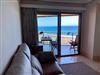 Man betritt das Apartment und hat bereits vom Eingang aus Blick durch den Wohnraum auf das Meer.