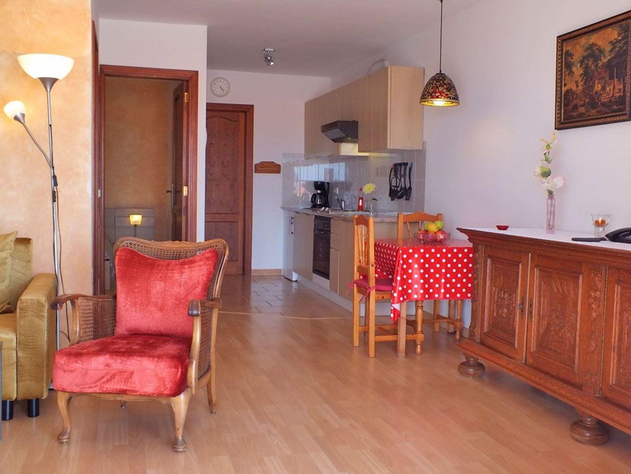 Dieses Apartment verfügt über ein Schlafzimmer mit zwei bequemen Einzelbetten. Das Badezimmer ist mit Dusche, WC, Waschbecken und Haarföhn ausgestattet.