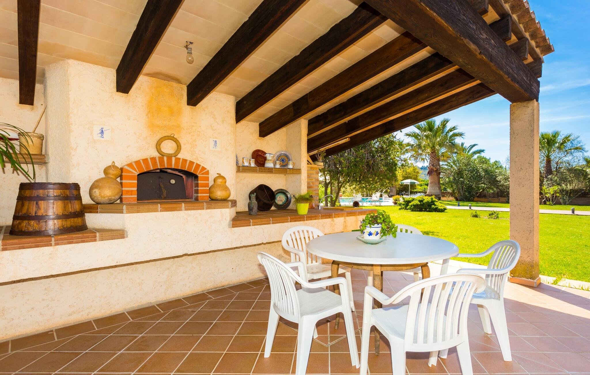 Wenn Sie sich der Finca "Els Mitjans" nähern, fallen Ihnen sofort die hohen Palmen auf, die der ruhigen Umgebung einen tropischen Touch verleihen.