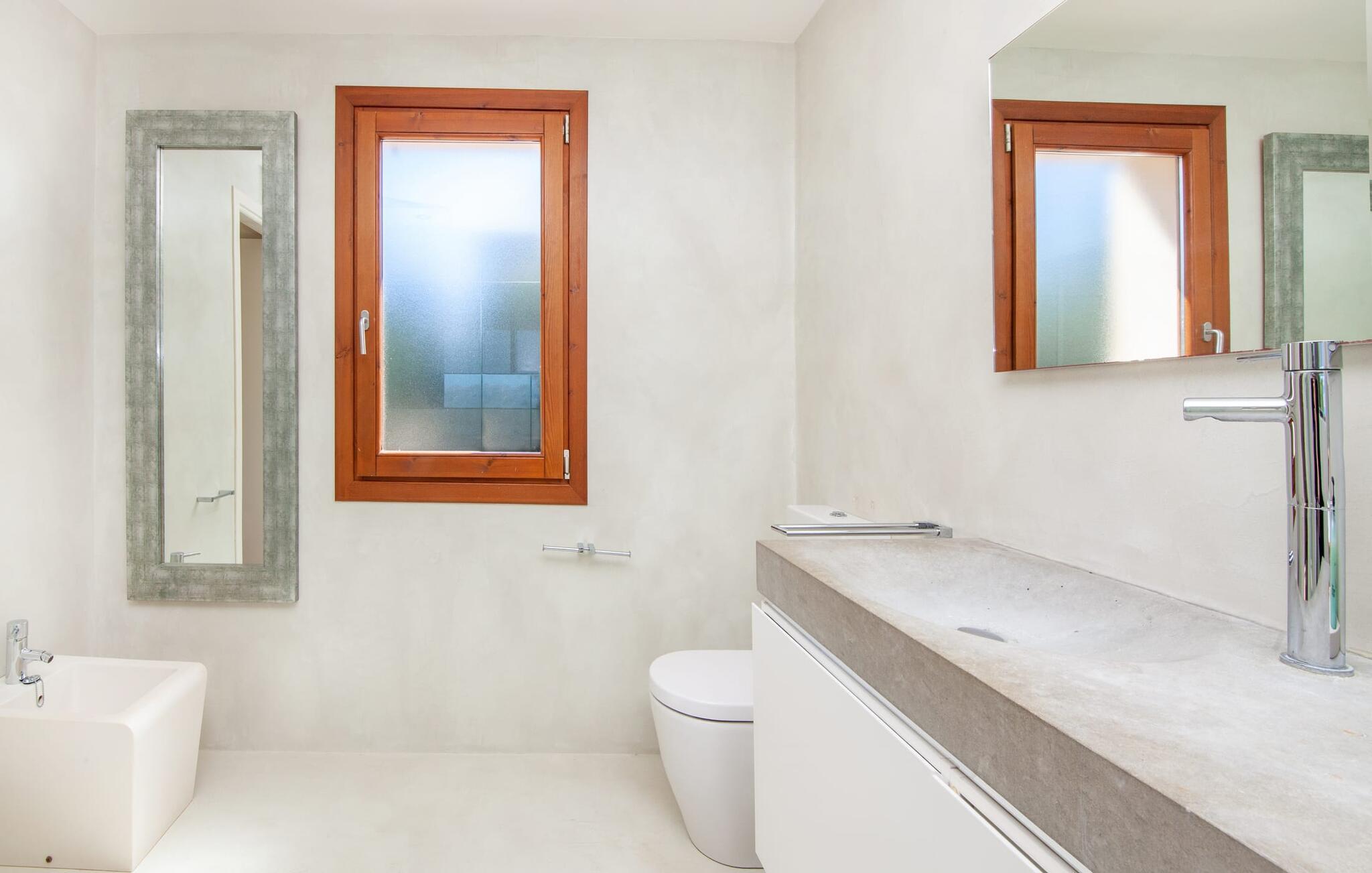Die Vielschichtigkeit dieser erstklassigen Ferienimmobilie wird Ihnen auch im perfekt gestalteten Innenbereich deutlich. Die gelungene Mischung aus modernem Landhauskomfort und innovativem Pragmatismus überzeugt. Die Villa „Elvissa“ schärft Ihre Sinne und verwöhnt Sie, denn es gibt so viele kleine und gezielt platzierte Einrichtungsdetails zu entdecken, die am Ende ein rundes Bild der Harmonie ergeben. Dies zeigt sich bereits im großzügigen Esszimmer. Hochwertiger Mares-Stein umrahmt den hier integrierten Kaminbereich. Die moderne Küche mit dahinterliegendem Hauswirtschaftsraum bietet den technischen Komfort, den man sich nicht nur in der Urlaubszeit wünscht. In einem versetzten Teil liegt das lichtdurchflutete Wohnzimmer mit Ausgang zur Terrasse. Auch die geräumigen, klimatisierten Schlafzimmer liegen etwas voneinander entfernt – ideal für Reisen mit zwei Familien oder befreundeten Paaren. Liebe zum Detail finden Sie auch in der Ausstattung der Ruheräume und der vier großzügig gestalteten Badezimmer. Die Individualität der Villa bleibt stets zurückhaltend und wirkt unprätentiös puristisch. „Elvissa“ erfüllt mühelos den Anspruch, dass sich Gäste das ganze Jahr über wie zu Hause fühlen und wird Sie mit Sicherheit genauso begeistern wie uns. Die moderne Villa „Elvissa“ besticht durch einen wunderschönen, uneinsehbaren Garten mit Pool, Außenküche, überdachter Terrasse und Tisch Das Anwesen befindet sich in der gediegenen Urbanisation Cielo de Bonaire und liegt auf der Landzunge zwischen den Buchten von Pollença und Alcúdia Shoppen und trotzdem direkt am Puls der Natur wohnen Es stehen zahlreiche Strände zur Auswahl, die innerhalb von 10 Autominuten erreichbar sind.