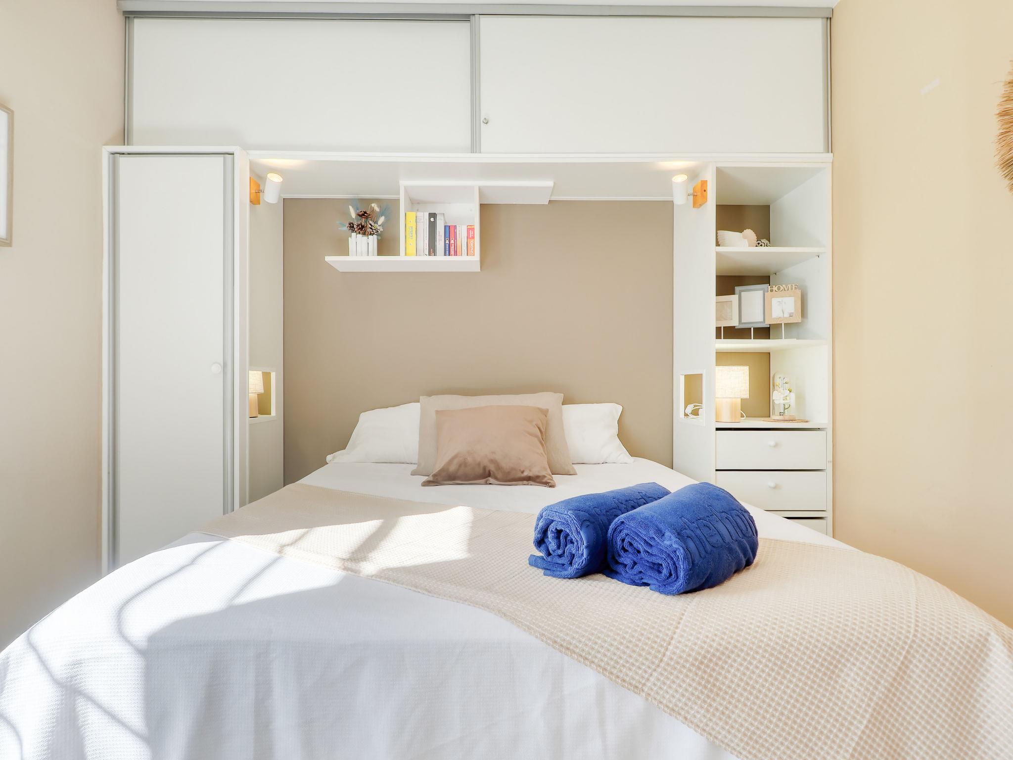 2-Zimmer-Wohnung 45 m2, im Erdgeschoss. Hell, komfortabel und modern eingerichtet: Wohn-/Esszimmer mit Esstisch, Digital-TV, Klimaanlage und Warmluftheizung. Ausgang zur Veranda. Schlafnische mit 1 Doppeldiwanbett (140 cm, Länge 190 cm). 1 Zimmer mit 1 franz. Bett (150 cm, Länge 190 cm), Klimaanlage und Warmluftheizung. Offene Küche (Geschirrspüler, 4 Glaskeramikplatten, Mikrowelle, Tiefkühler, elektrische Kaffeemaschine). Dusche/WC. Kleine Terrasse. Terrassenmöbel. Schöne Sicht auf den Kanal. Zur Verfügung: Waschmaschine, Bügeleisen, Haartrockner. Internet (WLAN, gratis). Garage. Bitte beachten: Nichtraucher-Unterkunft, Parkplatz nur für kleine Wagen. TV nur FR, ES. Kein Fahrstuhl. HUTG-018022 // Reg. Nr.: ESFCTU00001702000014633100000000000000HUTG-018022-135