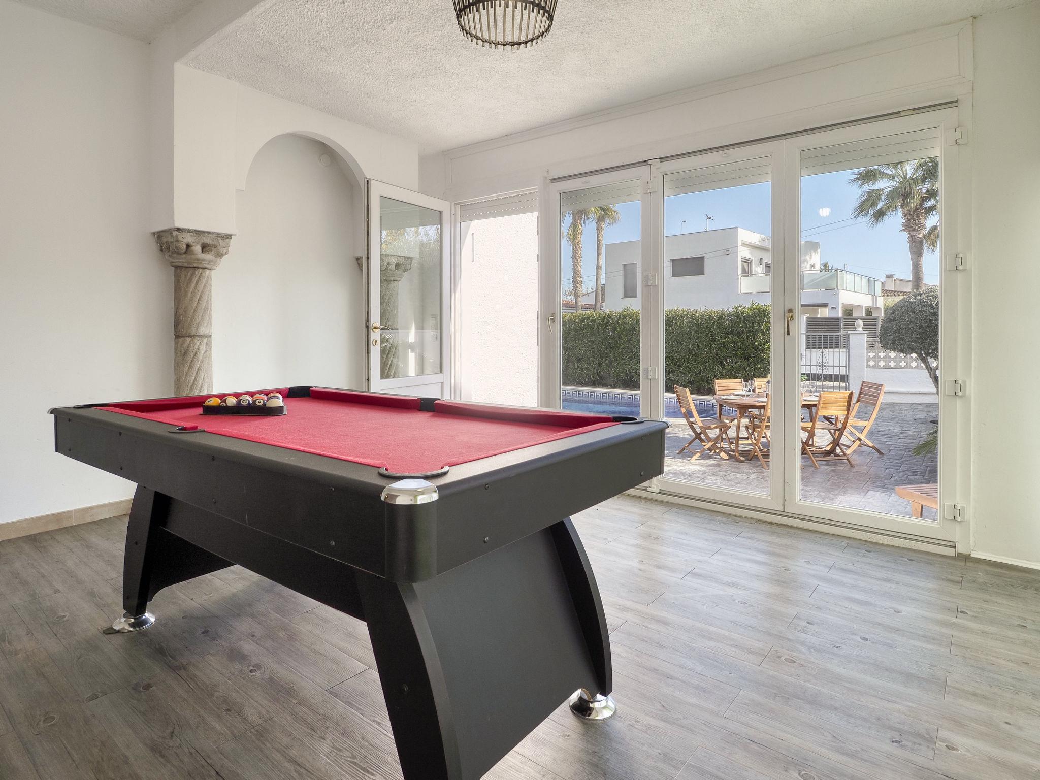 Modernes, gemütliches, komfortables Einfamilienhaus "Montgri". Im Ortsteil Montgri, 900 m vom Zentrum von Empuriabrava, ruhige, sonnige Lage im Villenviertel, verkehrsberuhigte Zone, 1 km vom Meer, 1 km vom Strand, 500 m vom Kanal, 200 m vom Fluss. Zur Alleinbenutzung: Grundstück 400 m2 (eingezäunt), Pflanzen, Schwimmbad (8 x 4 m, 160 cm tief, saisonale Verfügbarkeit: 30.Apr. - 30.Okt.). Aussendusche, Terrasse, Gartenmöbel, Grill. Im Hause: Billard. Parkplatz auf dem Grundstück. Lebensmittelgeschäft 300 m, Supermarkt 300 m, Restaurant 200 m, Bar 200 m, Bäckerei 300 m, Café, Internet-Café, Bushaltestelle 2.7 km, Sandstrand "Empuriabrava" 1 km. Sporthafen 1.5 km, Golfplatz (18 Loch) 13 km, Tennis 2 km, Minigolf 1.5 km, Wanderwege ab Haus, Radweg 240 m. Nahe gelegene Sehenswürdigkeiten: Túnel del Viento y aeródromo Skydive 2 km, Parque Acuático Roses 6 km, Museo Dalí Figueres 15 km, Casino y Festival de Perelada 12 km, Ruinas St. Martí Empuries 21 km, Monasterio de Sant Pere de Rodes 23 km. Die Schlüsselübergabe findet bei der Agentur Interhome in Empuriabrava statt.