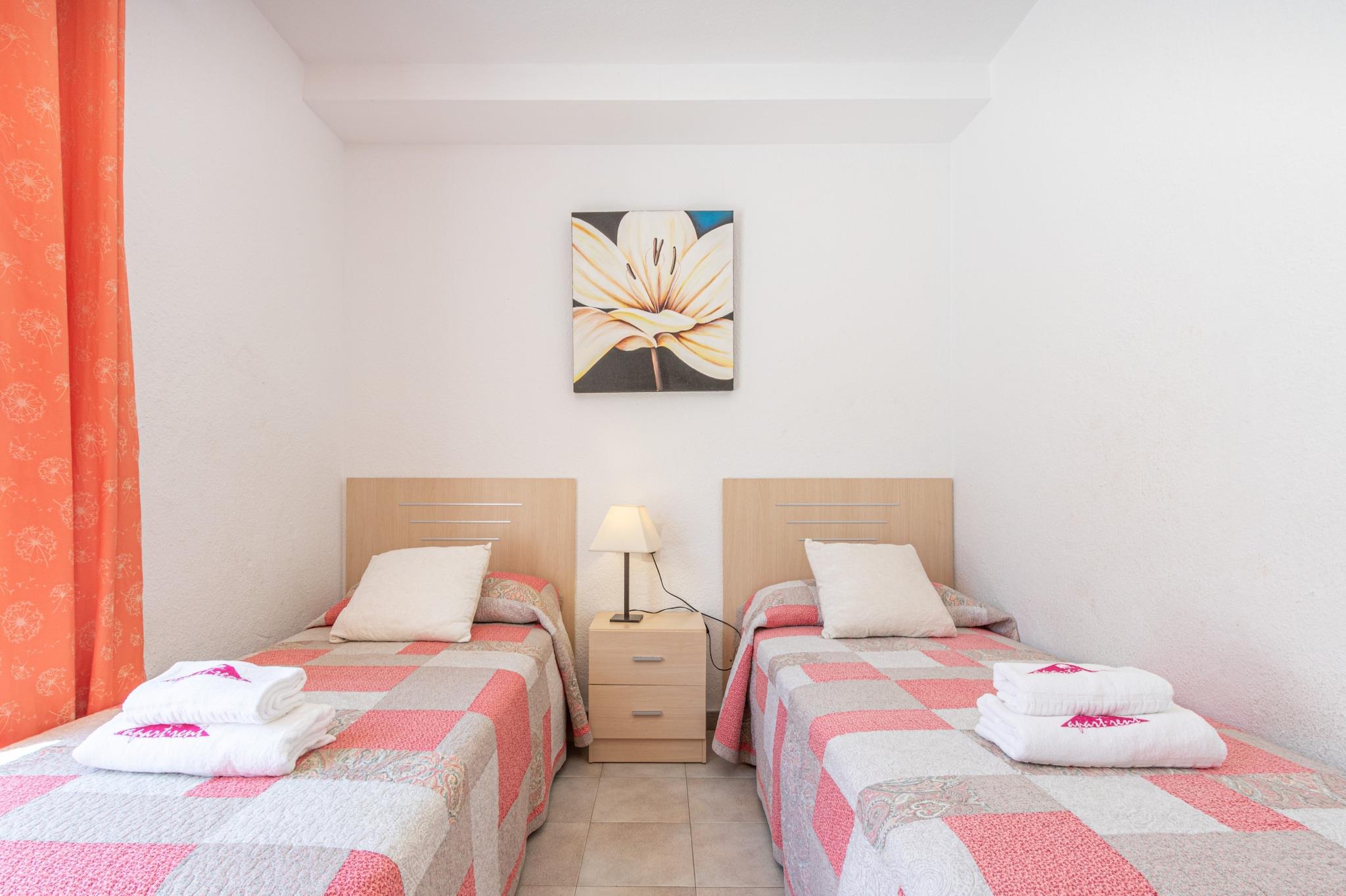 Dieses helle Apartment im ersten Stock bietet einen stilvollen und familienfreundlichen Aufenthalt im Herzen von Empuriabrava und ist ideal für bis zu fünf Gäste. Mit zwei gut ausgestatteten Schlafzimmern – eines mit Doppelbett, das andere mit zwei Einzelbetten – sowie einem Schlafsofa im Wohnbereich ist das 50 m² große Apartment ideal für Familien oder kleine Gruppen. Es verfügt über eine geräumige private Terrasse, Klimaanlage im gesamten Gebäude, Satellitenfernsehen (Spanisch, Deutsch, Französisch) und Highspeed-WLAN. Haustiere sind in der Unterkunft nicht erlaubt. Kurtaxe und optionale Extras werden separat berechnet. Das Apartment liegt günstig, nur 370 Meter vom Sandstrand von Empuriabrava und nur 200 Meter von Supermärkten und Geschäften entfernt und bietet einfachen Zugang zu wichtigen Annehmlichkeiten. Gäste können nahegelegene Sehenswürdigkeiten wie den Wasserpark Aquabrava (9 km), den Golfplatz Peralada (16 km) und den AVE/TGV-Bahnhof Figueres (20 km) erkunden. Der Flughafen Girona ist 65 km entfernt und somit eine ausgezeichnete Wahl für Inlands- und Auslandsreisende. Die moderne offene Küche ist komplett ausgestattet mit Cerankochfeld, Kühlschrank, Mikrowelle, Backofen, Gefrierschrank, Geschirrspüler, Kaffeemaschine, Toaster sowie sämtlichem notwendigen Kochgeschirr und Besteck. Eine Waschmaschine und ein Bügeleisen sorgen für zusätzlichen Komfort. Die Zentralheizung des Apartments sorgt das ganze Jahr über für Komfort und macht es zu einem idealen Ausgangspunkt für Strandurlaube oder die Erkundung der Costa Brava.