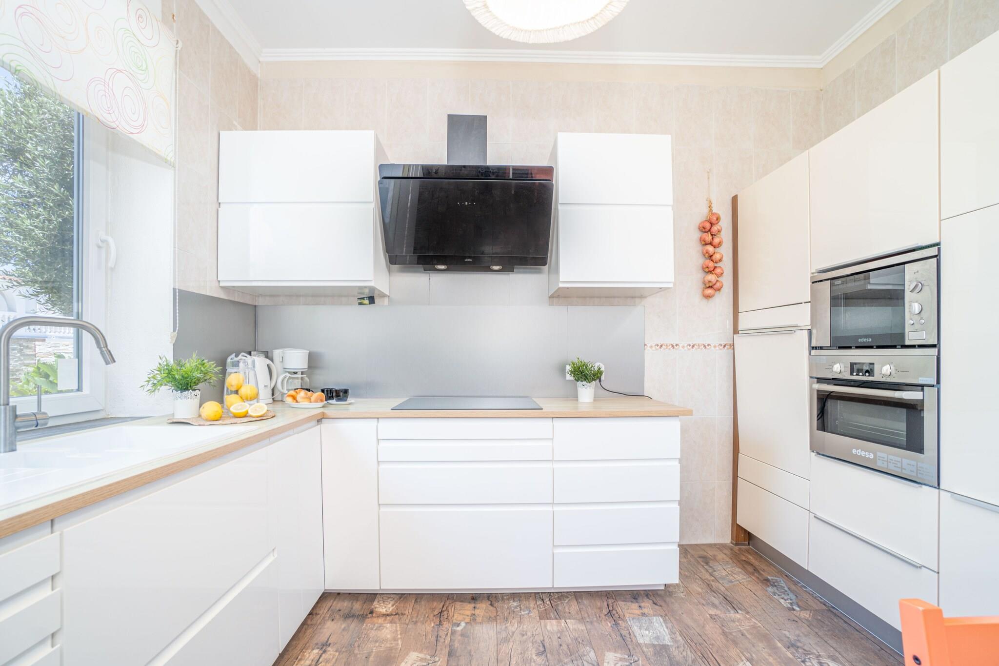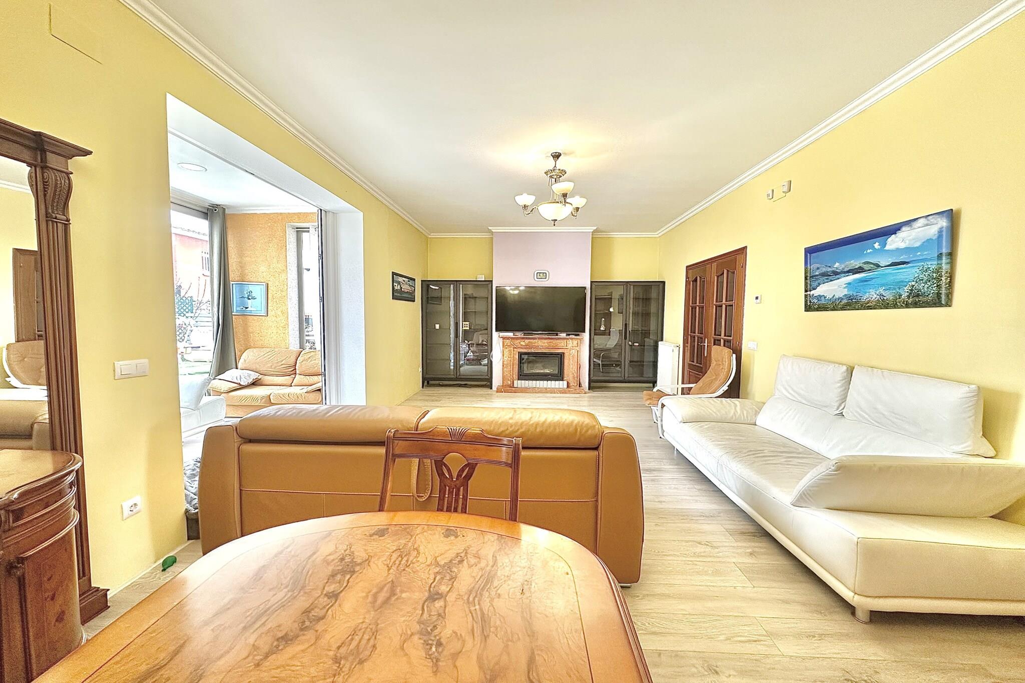 Das Haus 0125-MONTGRI in Empuriabrava ist eine geräumige und stilvolle Villa, ideal für Familien oder Gruppen. Sie bietet 200 m² Wohnfläche und einen privaten Pool. Mit drei Schlafzimmern und einem Doppelschlafsofa bietet sie bequem Platz für bis zu acht Gäste. Nur 600 Meter vom Strand und 400 Meter von einem Supermarkt entfernt, befindet sie sich in einer ruhigen Wohngegend, ideal für einen erholsamen Urlaub an der Küste. Diese Villa ist komplett ausgestattet und bietet Komfort und Bequemlichkeit. Sie verfügt über einen eingezäunten Garten, eine Terrasse, einen Grill, einen Kamin und einen Parkplatz im Freien. Die separate Küche ist mit Cerankochfeld, Kühlschrank, Mikrowelle, Backofen, Gefrierschrank, Geschirrspüler und allen wichtigen Utensilien ausgestattet. Freuen Sie sich auf Klimaanlage im Wohnzimmer und einigen Schlafzimmern, Zentralheizung, Sat-TV und kostenloses WLAN. Dank der guten Anbindung an den Golfplatz Peralada (16 km), den AVE/TGV-Bahnhof Figueres (20 km) und den Flughafen Girona (65 km) bietet die Villa eine hervorragende Anbindung für Erkundungstouren durch die Region. Eine rückzahlbare Kaution ist erforderlich. Optionale Leistungen wie Bettwäsche, Handtücher und Endreinigung sind verfügbar. Haustiere sind nicht erlaubt und Jugendgruppen werden nicht akzeptiert, um eine ruhige und familienfreundliche Umgebung zu gewährleisten.