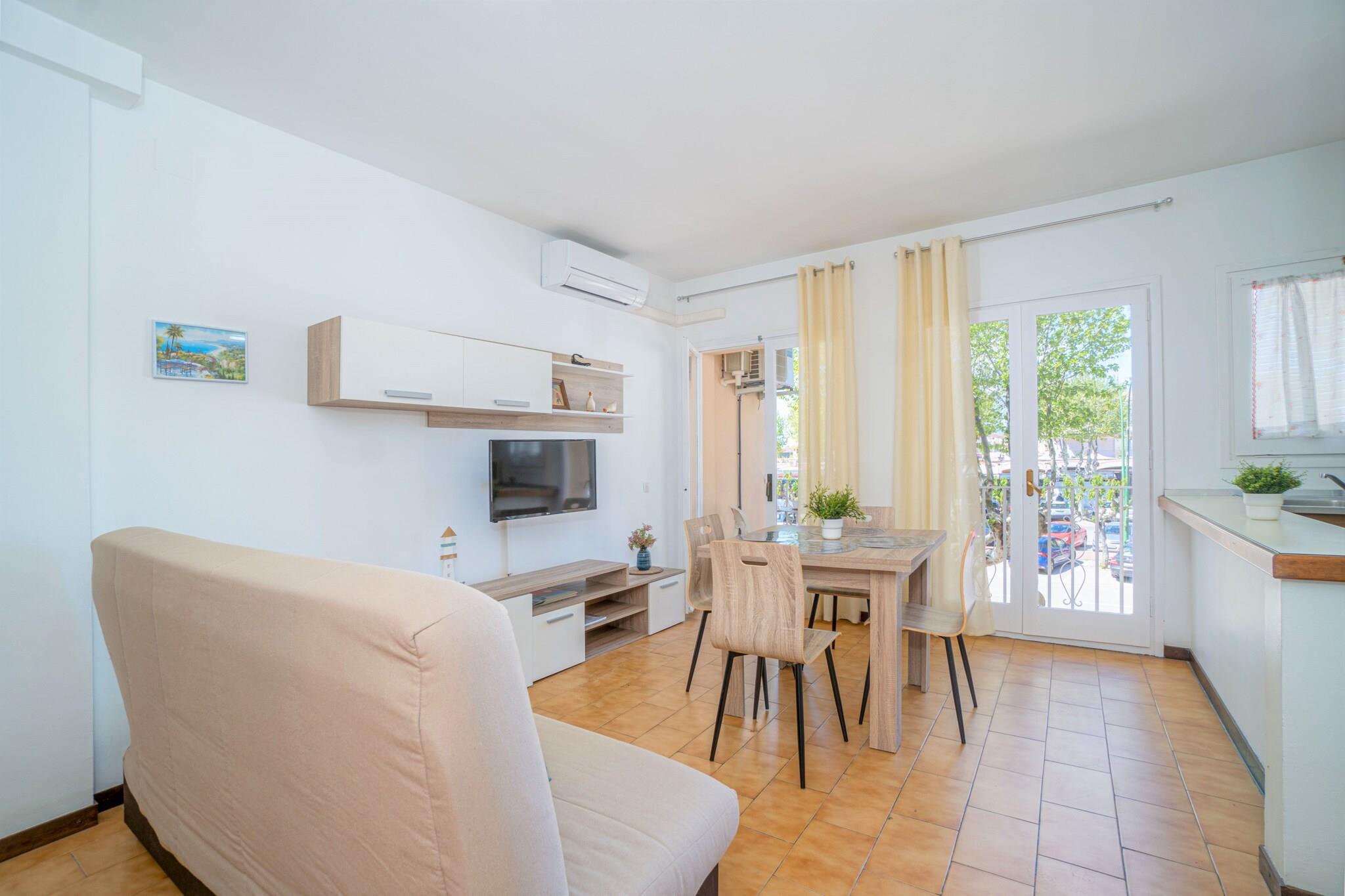Dieses Apartment mit 1 Schlafzimmer in Empuriabrava ist eine großartige Option für Paare oder kleine Familien und bietet Platz für bis zu 4 Gäste. Mit 45 m² Wohnfläche liegt es nur 300 Meter vom Sandstrand und 150 Meter von einem Supermarkt entfernt. Die Wohnung liegt in einem lebhaften Wohngebiet und in der Nähe des Flusses Muga und des Naturparks Aiguamolls de l'Empordà. Sie ist somit ideal für Strandurlauber und Naturliebhaber. Das Apartment verfügt über eine offene Küche mit Cerankochfeld, Mikrowelle, Gefrierschrank, Waschmaschine und Kaffeemaschine. Klimaanlage im Wohnzimmer, Sat-TV und optionales WLAN stehen den Gästen zur Verfügung. Die Anlage umfasst vier Gemeinschaftspools (geöffnet vom 15. Juni bis 15. September), die gegen eine zusätzliche Gebühr beim Concierge genutzt werden können. Haustiere sind auf Anfrage willkommen. Die Wohnung liegt günstig in der Nähe des Wasserparks Aquabrava (12 km), des Golfplatzes Peralada (16 km), des AVE/TGV-Bahnhofs Figueres (20 km) und des Flughafens Girona (65 km) und bietet somit eine gute Anbindung für Erkundungstouren in die Region. Eine erstattbare Kaution ist erforderlich. Optionale Leistungen wie Bettwäsche, Handtücher und Endreinigung sind verfügbar. In der Nebensaison ist ein flexibler Check-in möglich. Späte Ankünfte können über ein sicheres Schlüsselkasten.