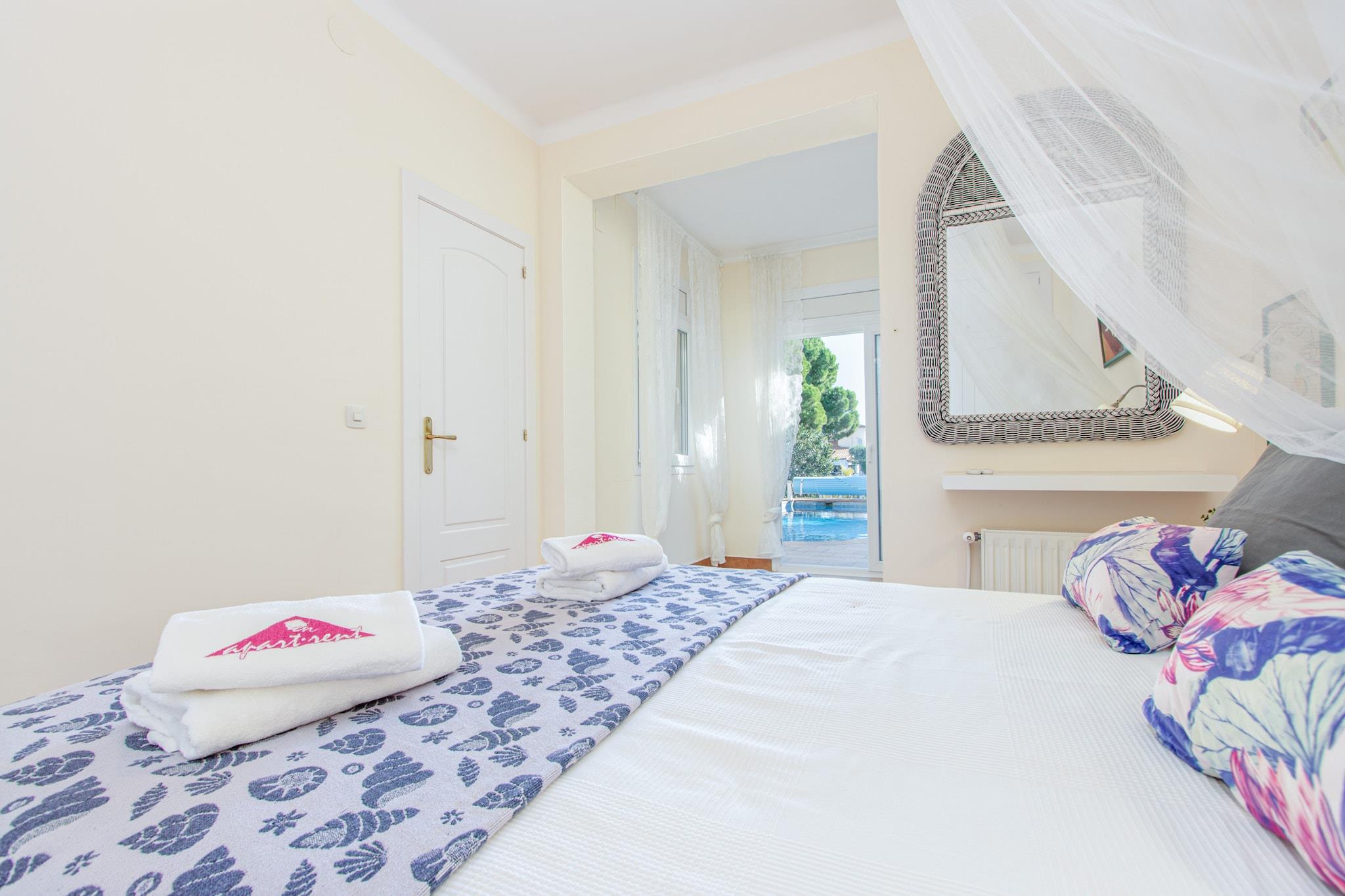 Diese elegante, 261 m² große Villa in Empuriabrava bietet einen ruhigen und geräumigen Rückzugsort für bis zu sechs Gäste. Mit drei Doppelzimmern und zwei Badezimmern ist das Haus ideal für Familien oder Gruppen, die einen erholsamen Urlaub am Wasser verbringen möchten. Das Anwesen verfügt über einen großen privaten Pool, einen wunderschön gepflegten Garten und eine möblierte Terrasse mit Grill – ideal zum Essen und Entspannen im Freien. Im Innenbereich bietet die Villa eine voll ausgestattete separate Küche mit modernen Geräten wie Kühlschrank, Backofen, Mikrowelle, Geschirrspüler und Kaffeemaschine. Gäste können Annehmlichkeiten wie WLAN, Sat-TV, Zentralheizung und Klimaanlage im Wohnzimmer und ausgewählten Schlafzimmern genießen. Ein privater Liegeplatz ist im Preis inbegriffen und somit eine ausgezeichnete Wahl für Bootsliebhaber. Die Villa liegt in einer ruhigen Wohngegend, nur 2 km vom Sandstrand und dem nächsten Supermarkt entfernt. Golfer können den 15 km entfernten Golfplatz Peralada besuchen, während kulturelle Sehenswürdigkeiten wie das Dalí-Museum in Figueres nur 20 km vom Anwesen entfernt sind. Der Flughafen Girona ist 65 km entfernt und bietet Reisenden eine bequeme Anbindung.