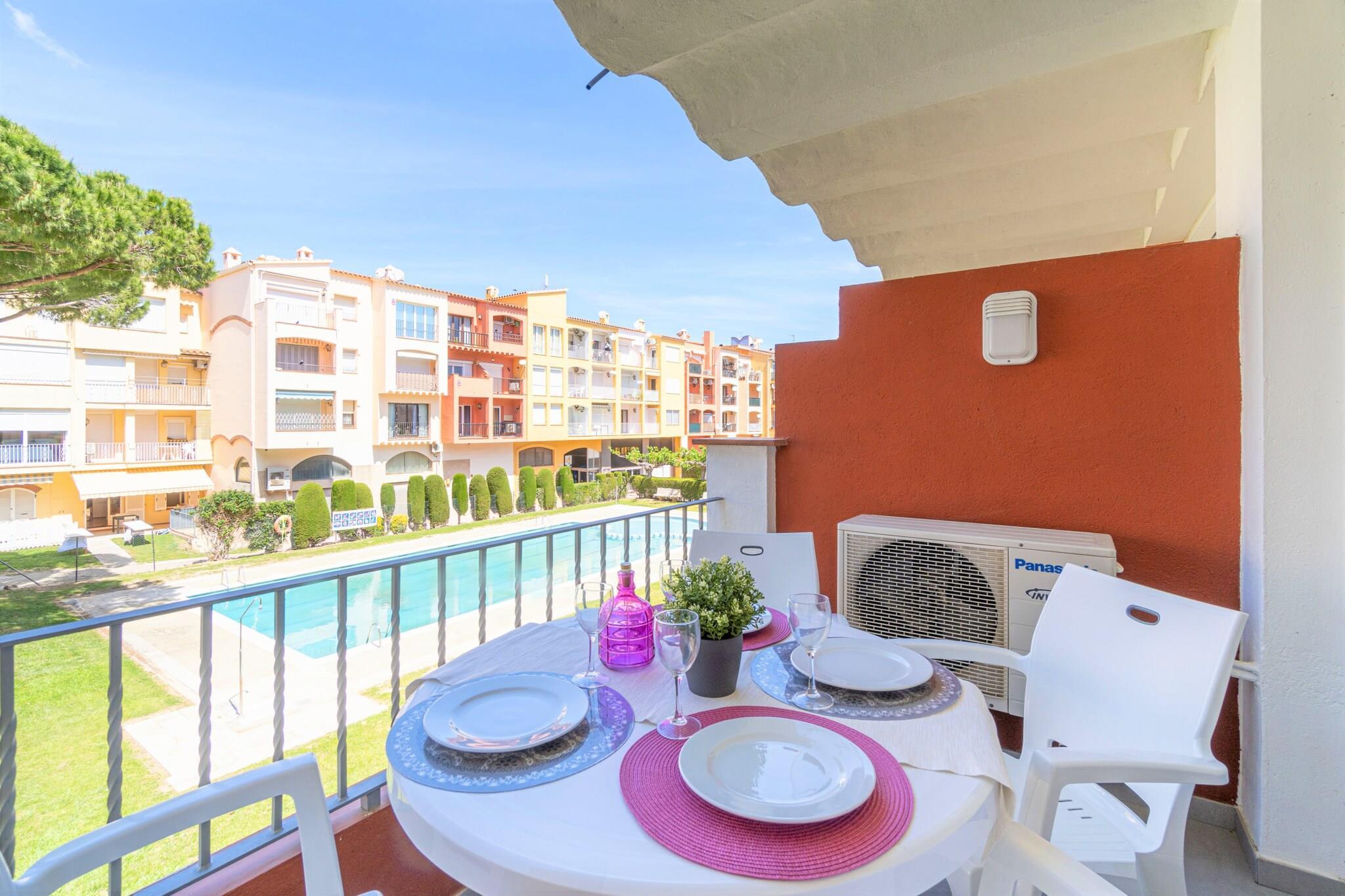 Dieses komfortable, 65 m² große Apartment in Empuriabrava bietet Platz für bis zu 5 Gäste und einen erholsamen Aufenthalt nur 250 Meter vom Sandstrand entfernt. Mit zwei Schlafzimmern und einem Schlafsofa im Wohnbereich ist es ideal für Familien oder kleine Gruppen. Das Apartment befindet sich im ersten Stock und verfügt über eine private Terrasse mit Poolblick – eine ruhige Atmosphäre für Ihren Urlaub. Die offene Küche ist komplett mit modernen Geräten ausgestattet, darunter Kühlschrank, Backofen, Mikrowelle, Geschirrspüler und Kaffeemaschine. Annehmlichkeiten wie WLAN, Klimaanlage im Wohnzimmer, Waschmaschine und Fernseher stehen Ihnen zur Verfügung. Die Anlage verfügt über vier Swimmingpools, die gegen Aufpreis genutzt werden können und deren Zugang vom Concierge verwaltet wird. Überdachte Parkplätze stehen in der Nähe gegen Aufpreis zur Verfügung. Das Apartment liegt in einer ruhigen Wohngegend, nur 200 Meter von einem Supermarkt entfernt und in der Nähe von Restaurants und Geschäften. Lokale Sehenswürdigkeiten wie der Wasserpark Aquabrava (8 km), der Golfplatz Peralada (16 km) und das Dalí-Museum in Figueres (20 km) sind bequem erreichbar. Der Flughafen Girona ist 65 km entfernt und somit ein bequemer und angenehmer Ausgangspunkt für die Erkundung der Costa Brava.