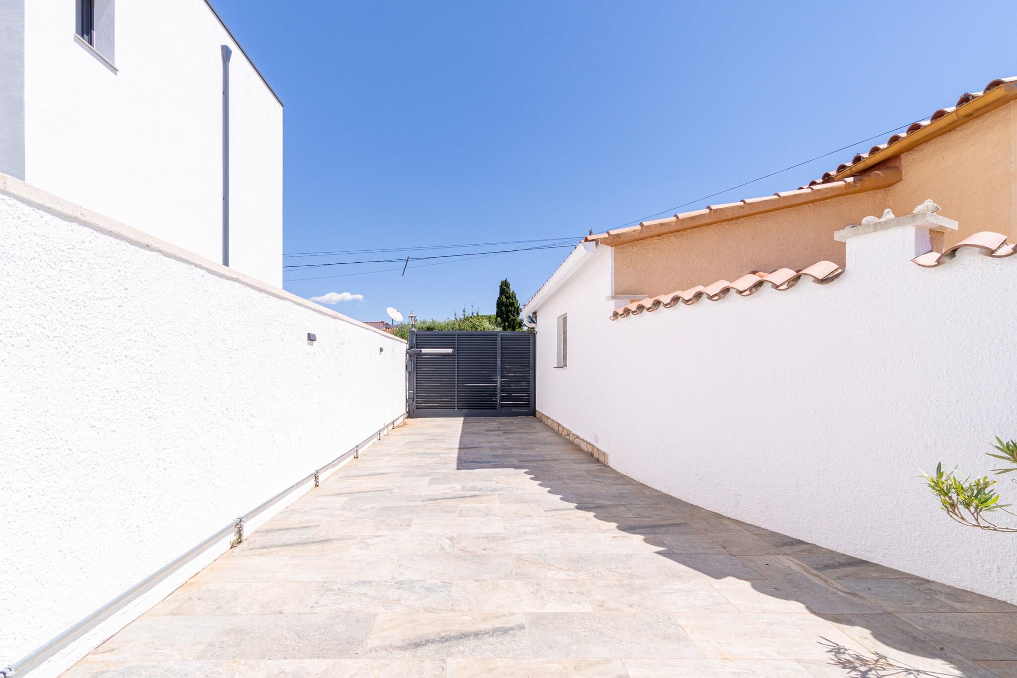 Diese geräumige, 123 m² große Villa in Empuriabrava bietet einen erholsamen und privaten Rückzugsort für bis zu sechs Gäste. Mit drei Doppelzimmern und zwei Badezimmern (eines mit Badewanne, eines mit Dusche) ist sie ideal für Familien oder Gruppen, die Wert auf Komfort und Bequemlichkeit legen. Die Villa verfügt über einen privaten Pool, eine möblierte Terrasse und einen ruhigen Gartenbereich – ideal, um die mediterrane Sonne zu genießen. Die voll ausgestattete Küche umfasst Kühlschrank, Mikrowelle, Backofen, Geschirrspüler, Kaffeemaschine, Toaster und alle notwendigen Utensilien für die Zubereitung hausgemachter Mahlzeiten. Zur weiteren Ausstattung gehören WLAN, Sat-TV, Waschmaschine, Trockner, Bügeleisen, Elektroheizung und Klimaanlage im Wohnzimmer und einigen Schlafzimmern. Parkplätze im Freien stehen vor Ort zur Verfügung. Haustiere sind auf Anfrage willkommen. Die Villa liegt in einer ruhigen Wohngegend, nur 400 m von einem Supermarkt und 2 km vom Sandstrand entfernt. Zu den Sehenswürdigkeiten in der Nähe zählen Castelló d’Empúries (4 km), der Golfplatz Peralada (16 km), das Dalí-Museum in Figueres (20 km) und der Flughafen Girona (65 km). Mit ihrem privaten Pool, modernem Komfort und ihrer hervorragenden Lage ist diese Villa der perfekte Ausgangspunkt für einen erholsamen Urlaub an der Costa Brava.