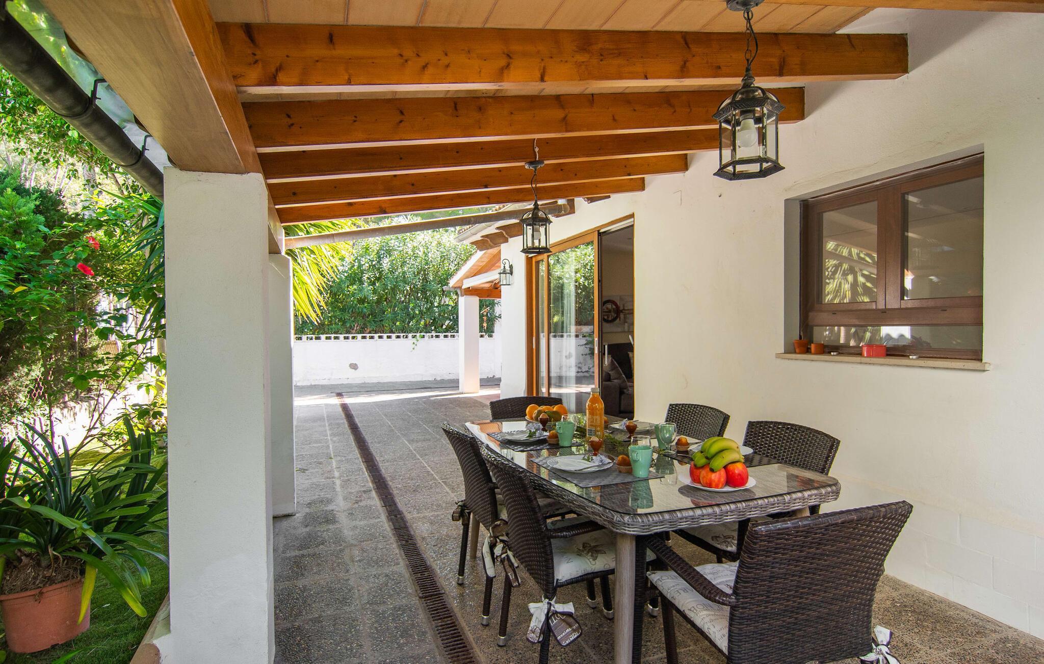 Die Strandvilla mit mediterranem Garten befindet sich in der bekannten Hafenstadt Alcúdia. Einkaufen in der Stadt, der Besuch von Restaurants, Bars oder Cafés können Sie mit angenehmen Spaziergängen verbinden, ohne einen Mietwagen zu haben. Der lange Sandstrand von Platja d'Alcúdia ist ca. 100 m entfernt.