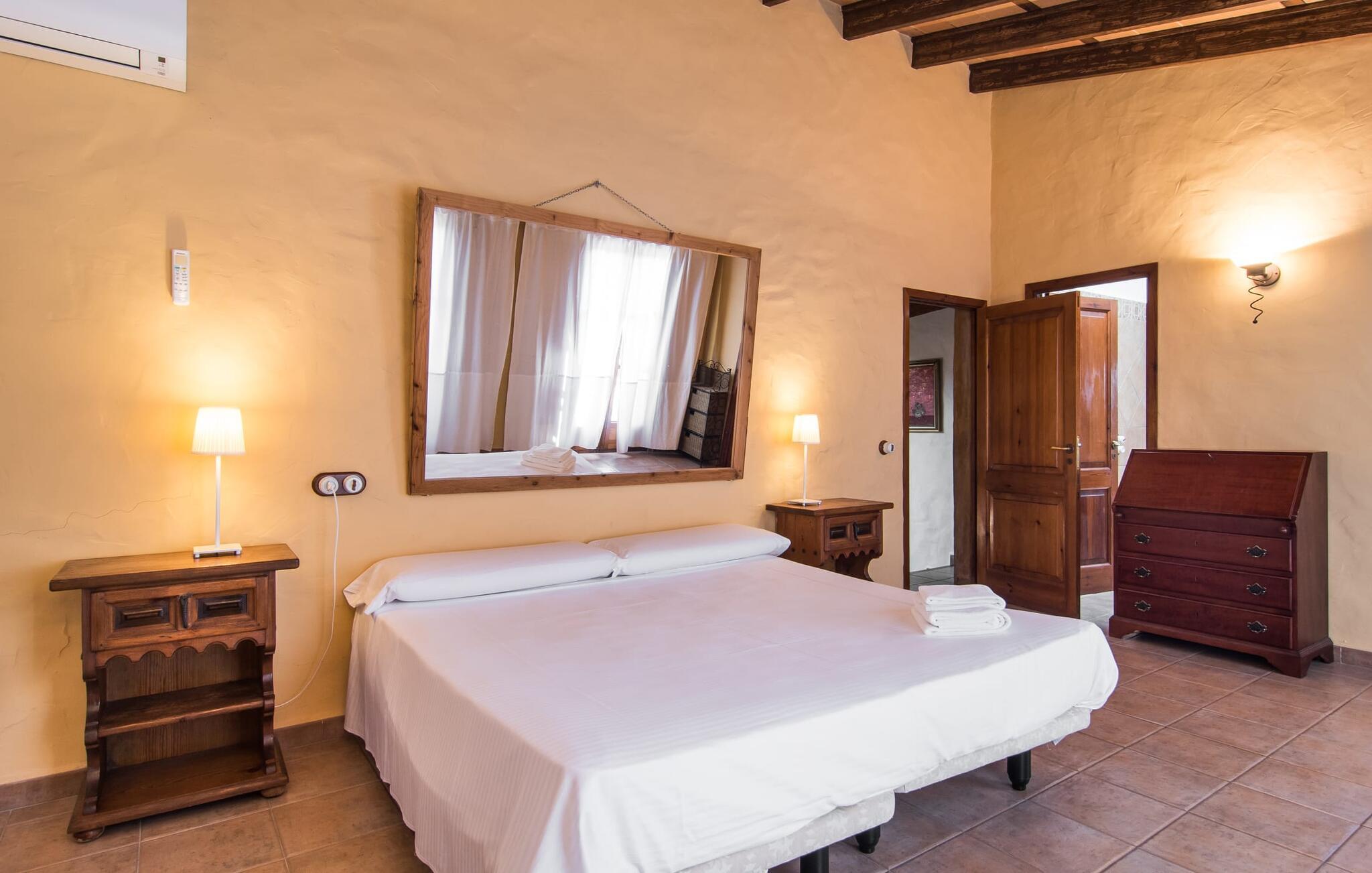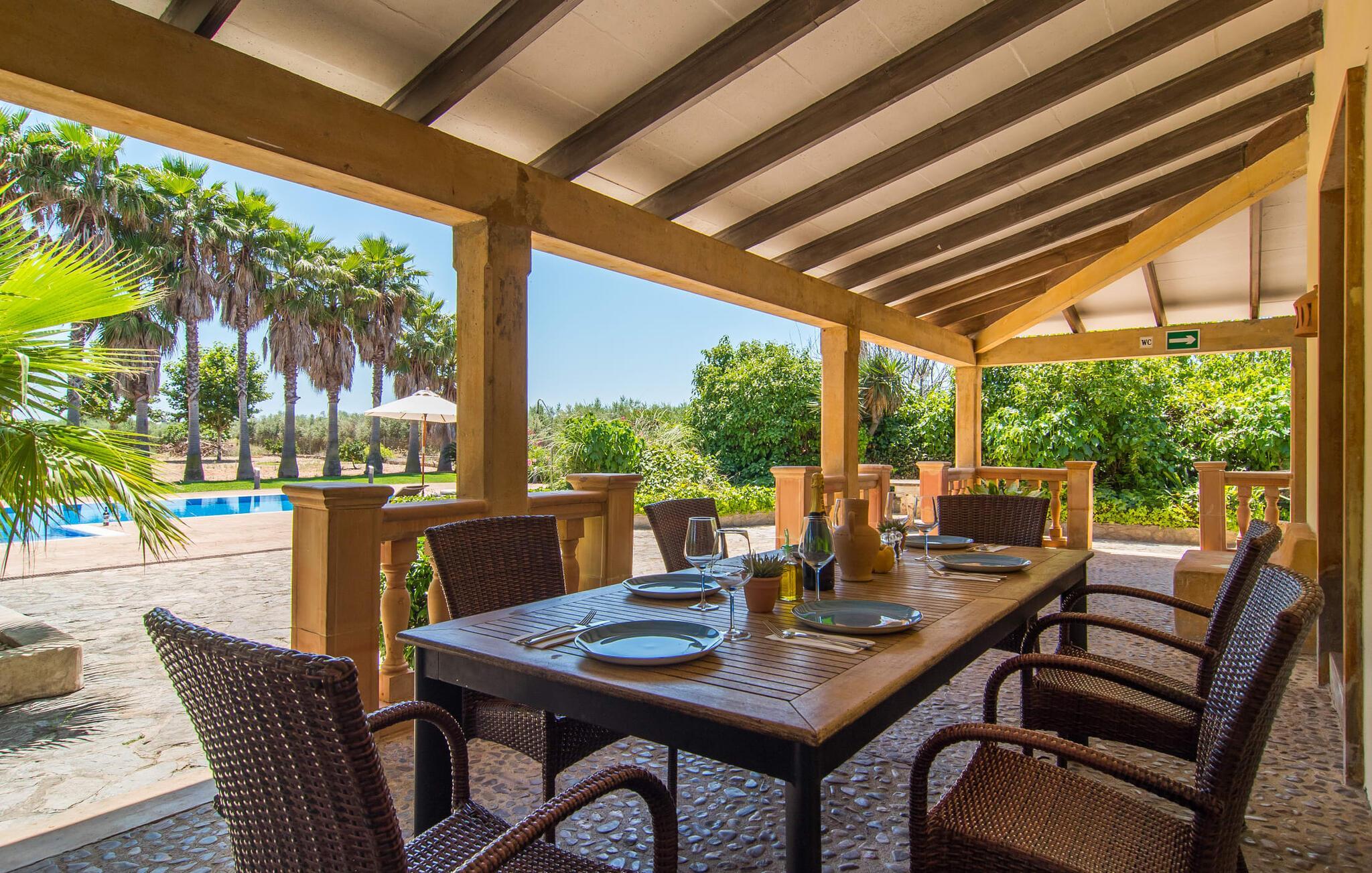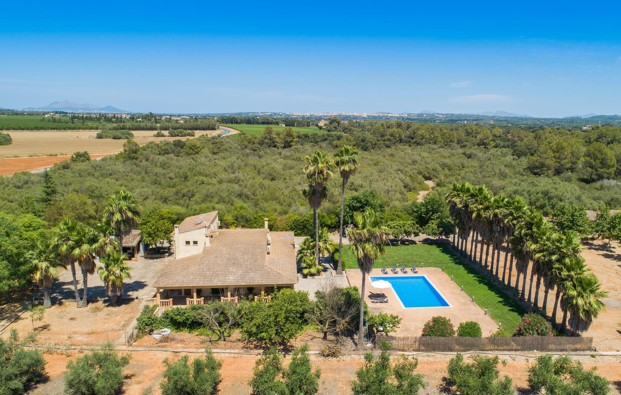 Das Haus liegt auf einem großen Grundstück mit Palmen-, Obst- und Olivenbäumen und verfügt über wunderschön gepflasterte Terrassen zum Entspannen und Essen. Genießen Sie eine Partie Basketball, bevor Sie sich im geräumigen Pool, der von hohen Palmen umgeben ist, abkühlen. Die Liegen rund um den Pool eignen sich perfekt für eine lange Siesta in der Sonne. Die Außenküche bietet einen hervorragenden Blick auf das Spielfeld und es gibt schattige Parkplätze direkt am Haus.