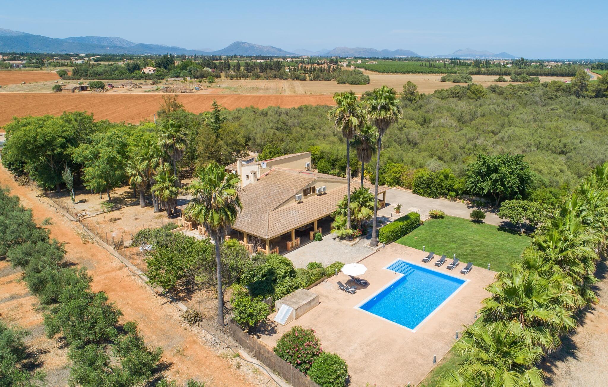 Das großzügige Bauernhaus "Es Caulls" wurde mitten im Grünen in herrlich ruhiger und abgeschiedener Lage erbaut. Das malerische Städtchen Muro ist nur ca. 5,3 km mit dem Auto entfernt. Die Bucht von Alcúdia mit ihren verschiedenen Strandabschnitten ist nur ca. 17,1 km entfernt.