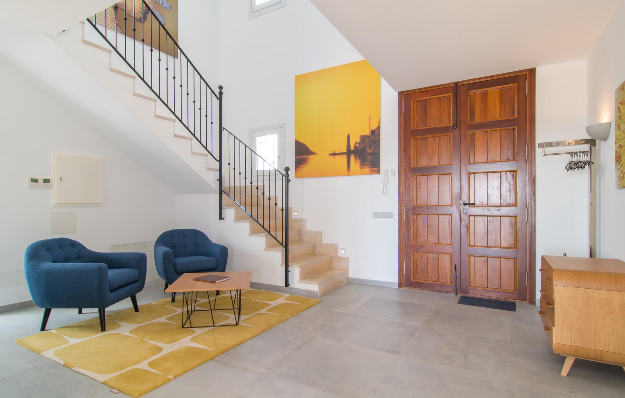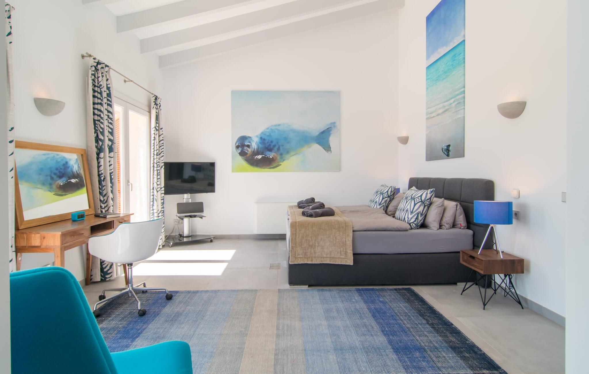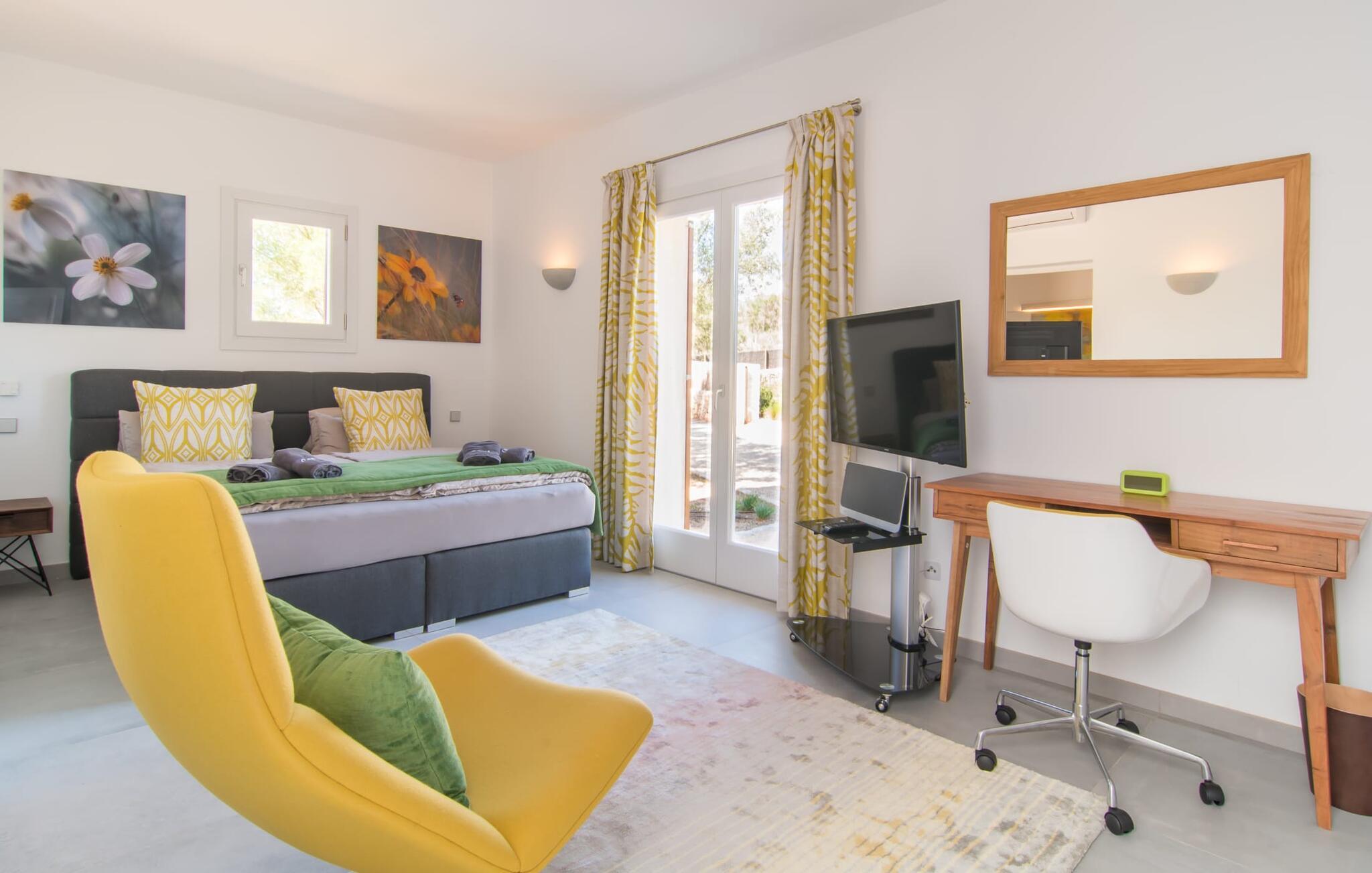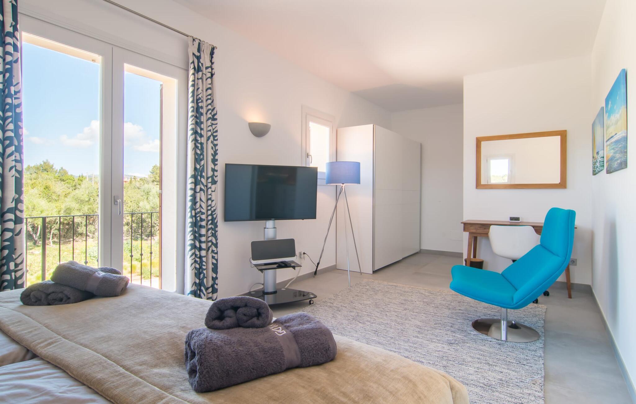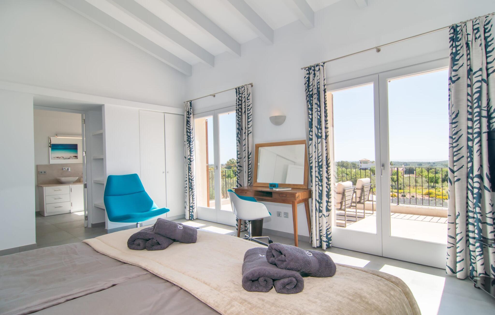 Die nahe gelegene Stadt Portocolom ist ein wirklich malerisches Fischerdorf an einer breiten Bucht. Es gibt eine herrliche Promenade mit vielen schönen Restaurants und Bars. Vor dem malerischen Hafen schaukeln mehrere traditionelle Fischerboote Seite an Seite mit modernen Yachten. Mit dem Auto erreichen Sie den Ort in ca. 4 km über die Straße in der Nähe der Villa, die bei bestimmten Windverhältnissen vom Grundstück aus zu hören ist. Ihr Feriendomizil „Es Clape de Sa Galera“ bietet zudem einen reizvollen Ausgangspunkt für Spaziergänge oder Wanderungen. Die schöne Landschaft wird sicherlich viel Ruhe und Entspannung bieten. Und wenn Sie lieber ans Meer wollen, erreichen Sie den kleinen Strand Cala Marçal in nur 6 km mit dem Auto; Die Bucht von Sa Pobla ist nur 10 km entfernt. Wer einen ruhigen Strand sucht, wird an der nur rund 30 m breiten Bucht von Cala Ratjada fündig, die ebenfalls etwa 10 km von der Villa entfernt liegt. Allerdings können Sie Ihr Auto dort nicht parken. Der Strand ist nur zu Fuß erreichbar, weshalb es dort so ruhig ist. Die herrschaftliche Villa „Es Clape de Sa Galera“ liegt in ländlicher Lage im Osten Mallorcas. Das kleine Fischerdorf Portocolom, in dem sich auch der nächste Supermarkt befindet, liegt etwa 4 km entfernt. Es gibt zahlreiche gute Restaurants, Bars und eine schöne Promenade. Auch die nächsten Strände sind nur wenige Kilometer entfernt. Zum Beispiel müssen Sie nur etwa 12 Minuten fahren, um den Strand von Cala Marçal zu erreichen.